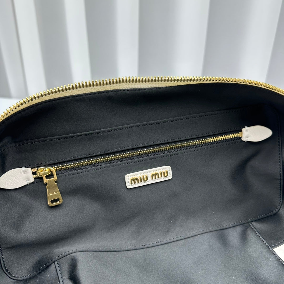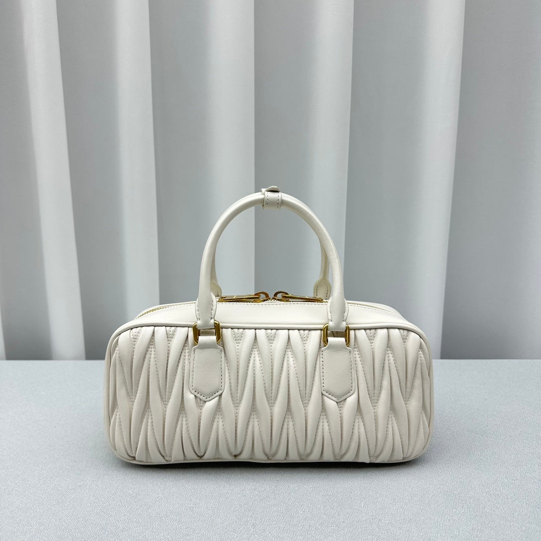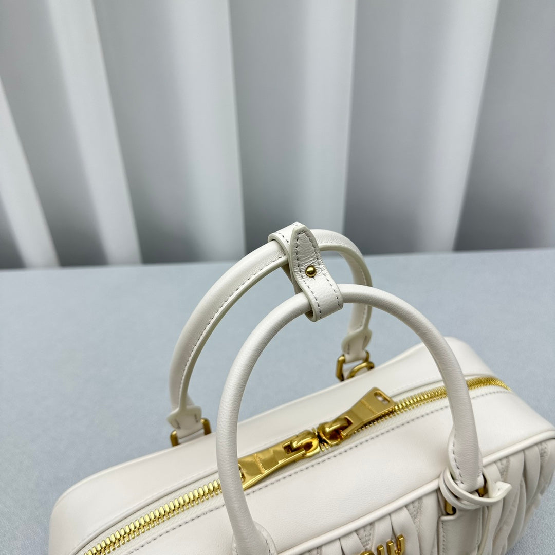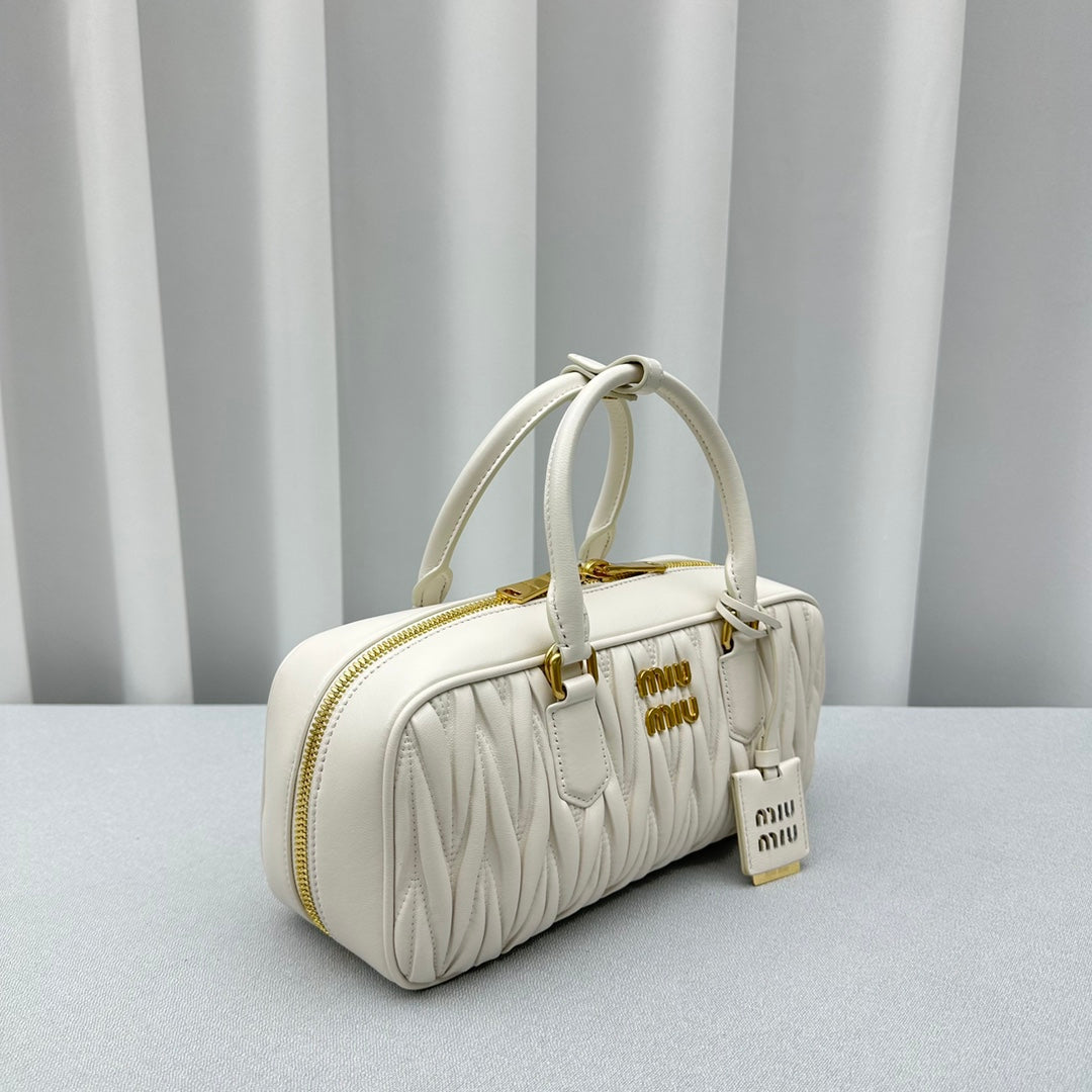 Large White Out MiùMi Sheepskin Pleated Bag - Versatile Luxury