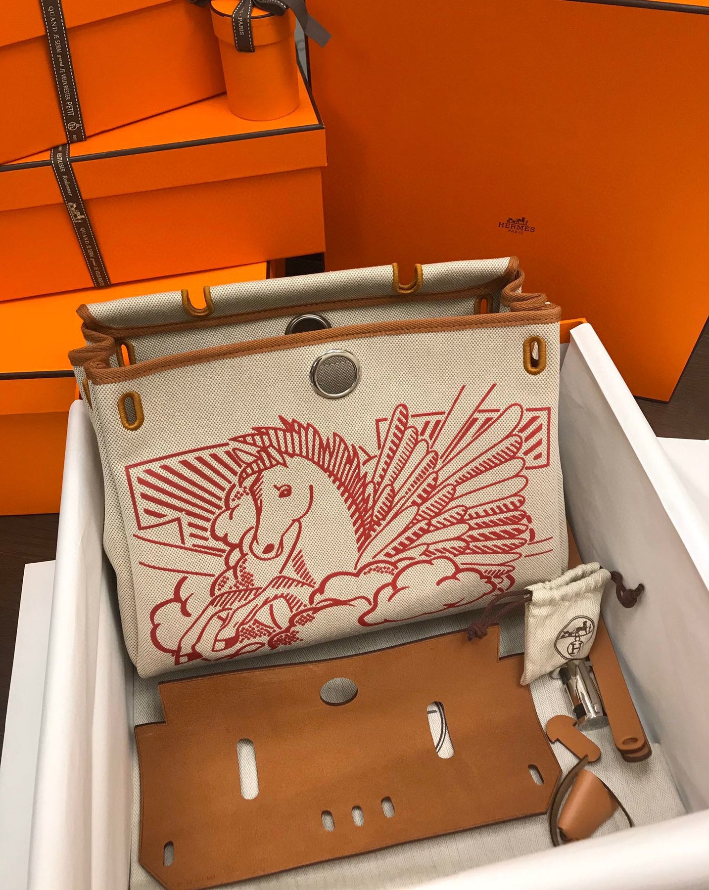 Introducing the Limited Edition Herbag 31cm, featuring an exclusive silk screen design inspired by the majestic Pegasus in a stunning pink hue. This semi-handmade bag is crafted from the finest imported leather, making it a cost-effective yet luxurious addition to your collection.
