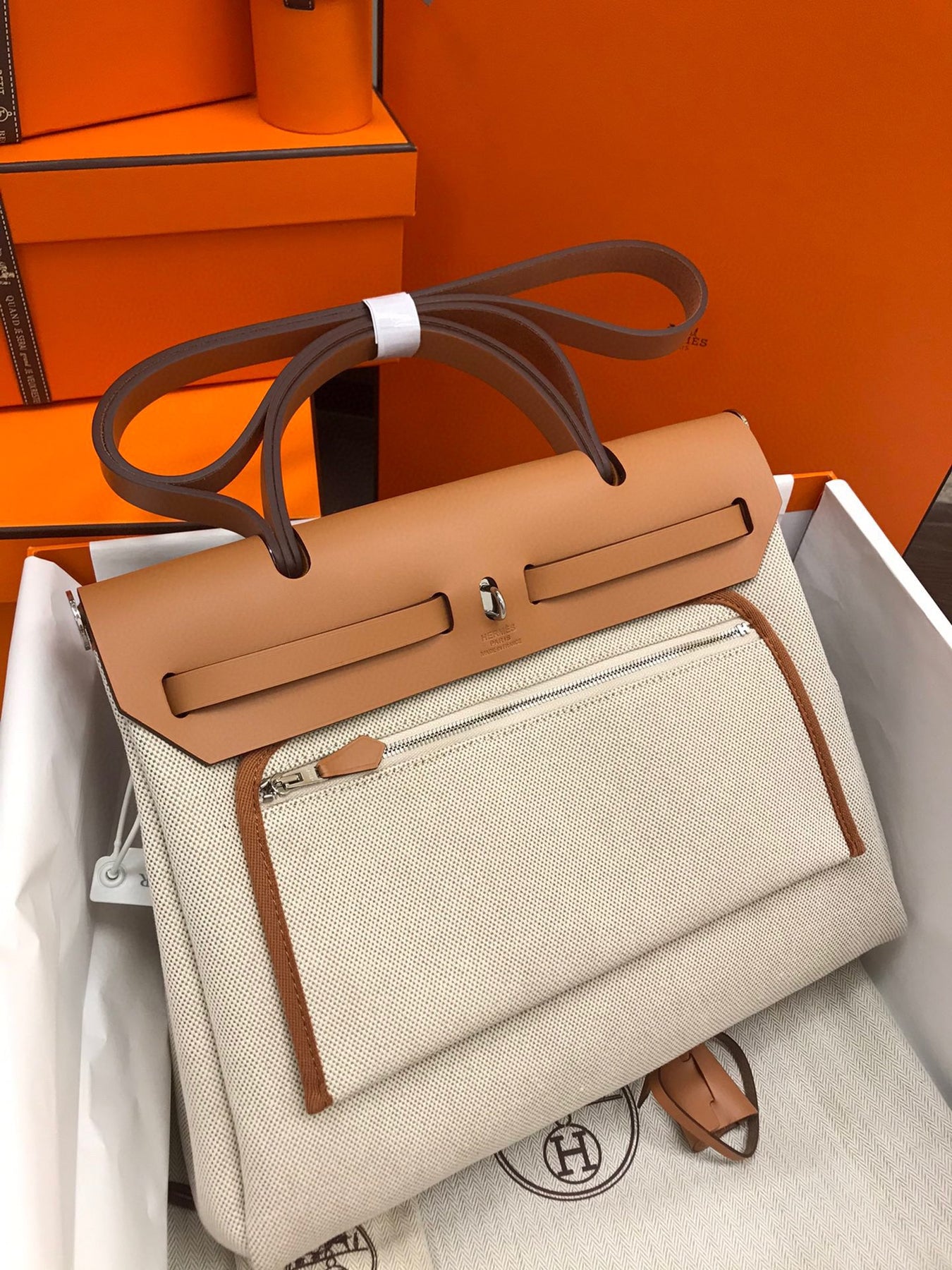 The Herbag 31cm showcases a low-key aesthetic, making it an ideal entry-level piece for Hermes enthusiasts. The interior includes a small pouch for essentials such as lipstick, keys, cosmetics, and cash, ensuring you stay organized on the go. Each bag features unique annual production marks crafted by skilled artisans, making it a true collector's item.