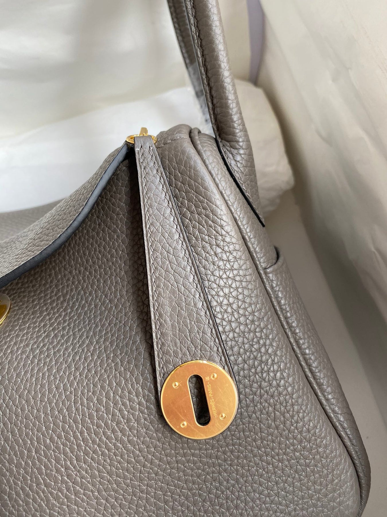 Lindy 26cm Semi-Handmade TC Leather Bag with Gold Buckle - Gray