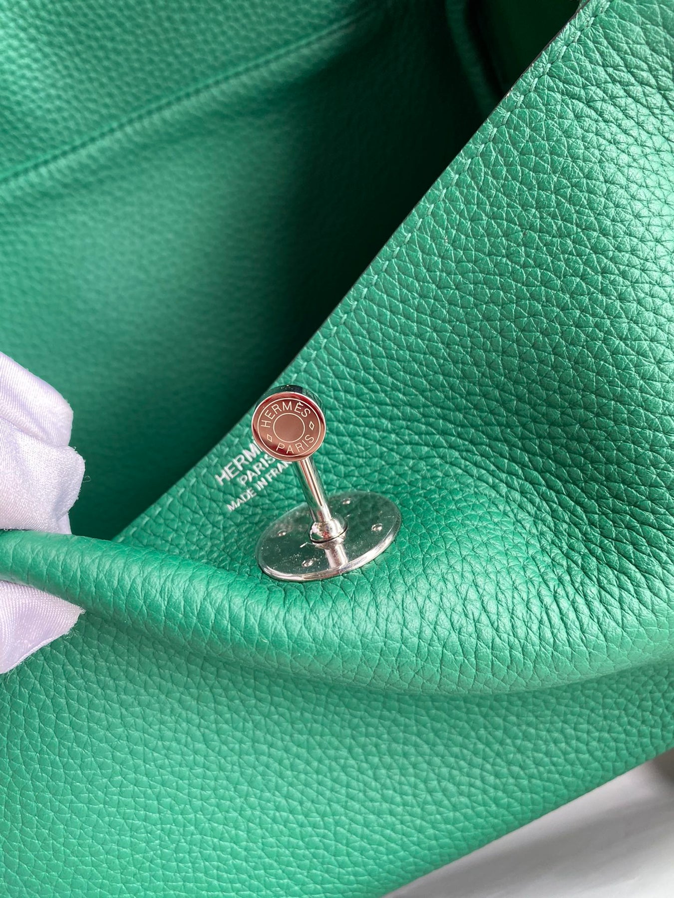 Lindy 26cm TC Leather Handbag in Malachite Green with Silver Buckle
