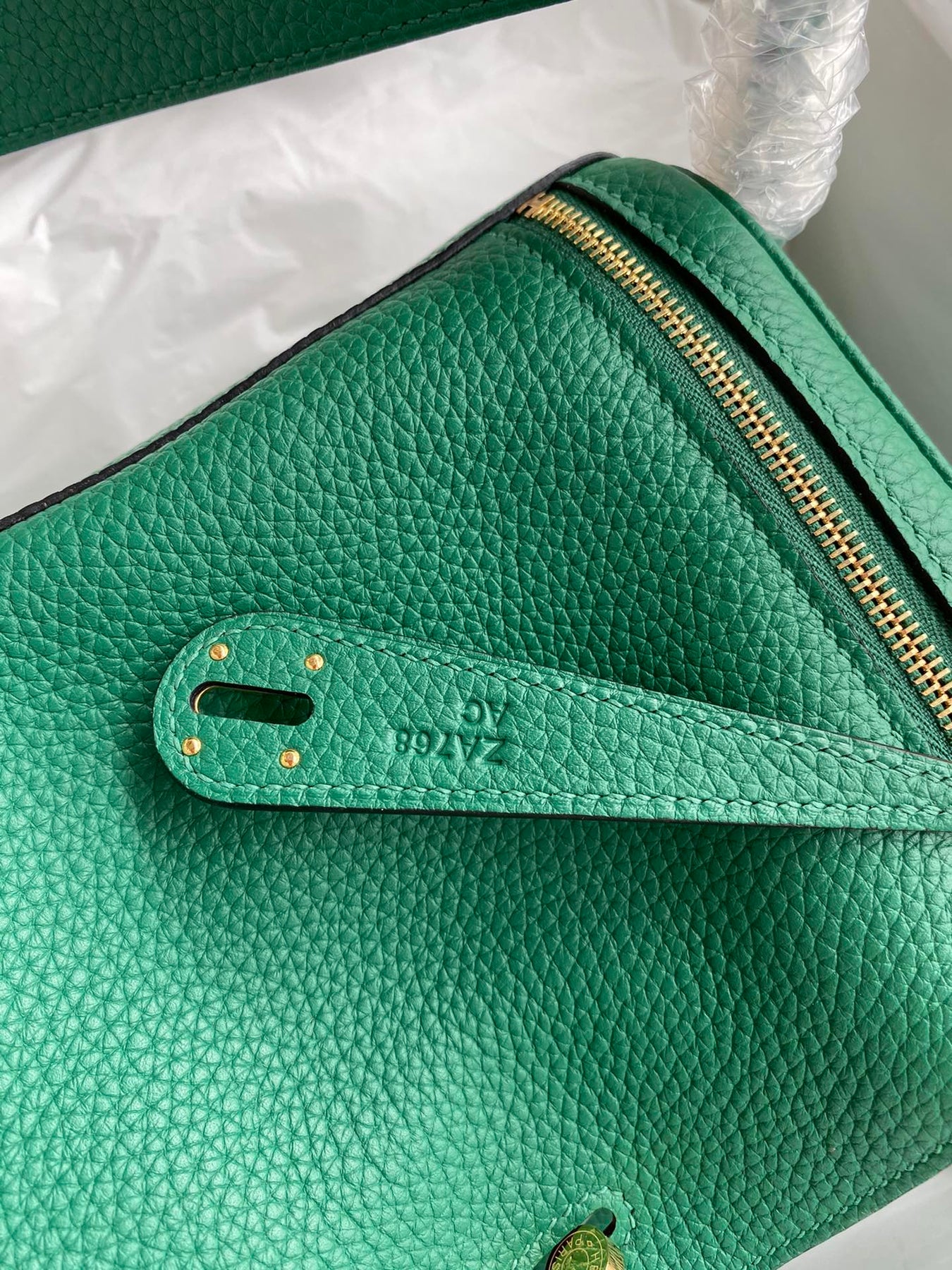 Discover the exquisite Lindy 26cm handbag, expertly crafted from premium TC leather in a stunning malachite green hue. Adorned with an elegant gold buckle and finished with meticulous wax thread detailing, this handbag combines sophistication with functionality. Perfect for any occasion, the compact size allows for effortless carrying while adding a pop of color to your ensemble. Elevate your style with the versatility and elegance of the Lindy handbag. Available now!