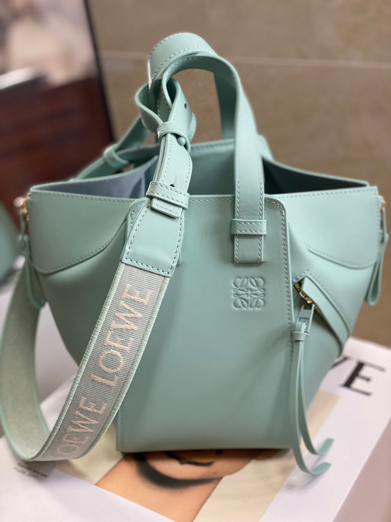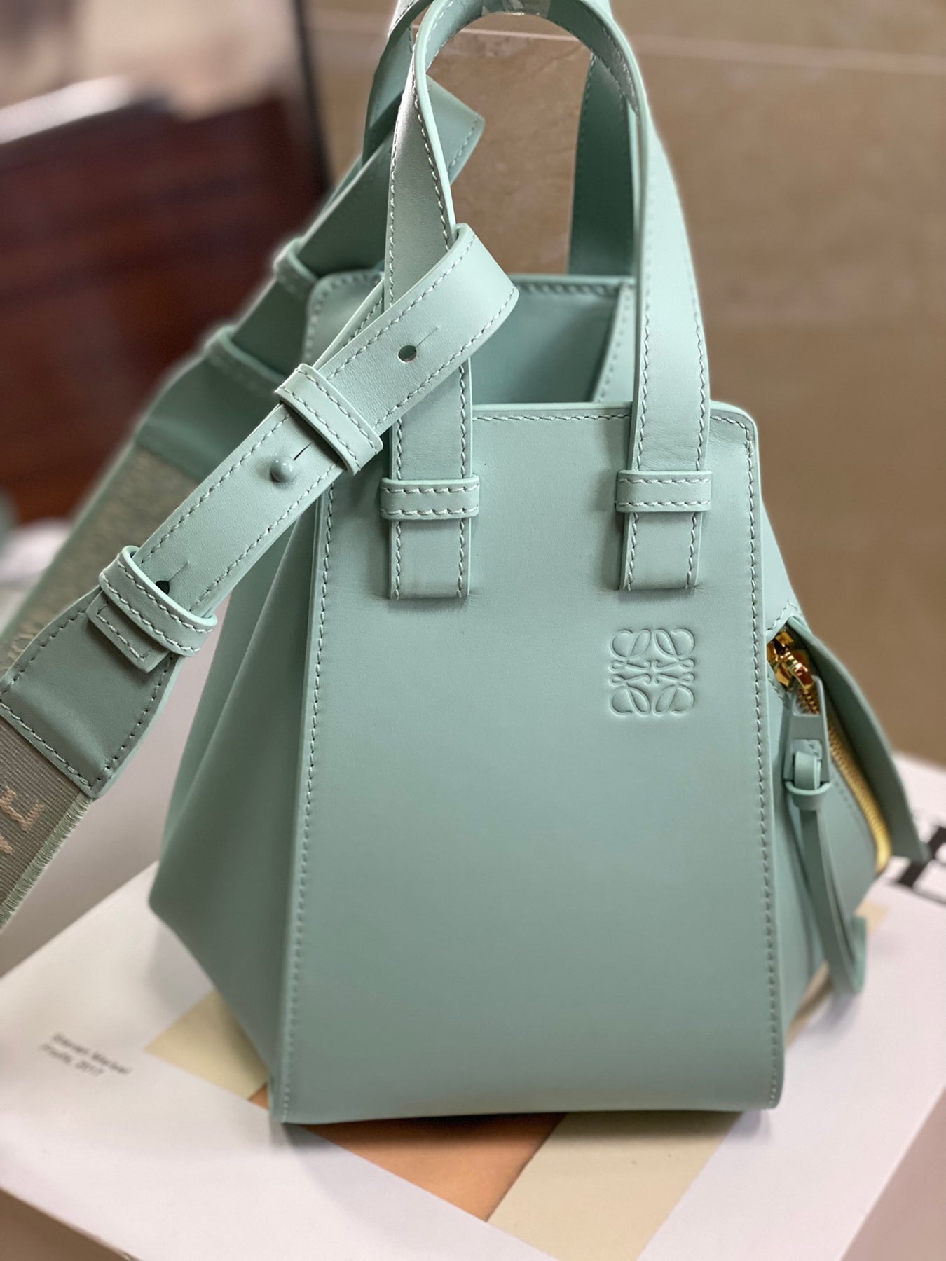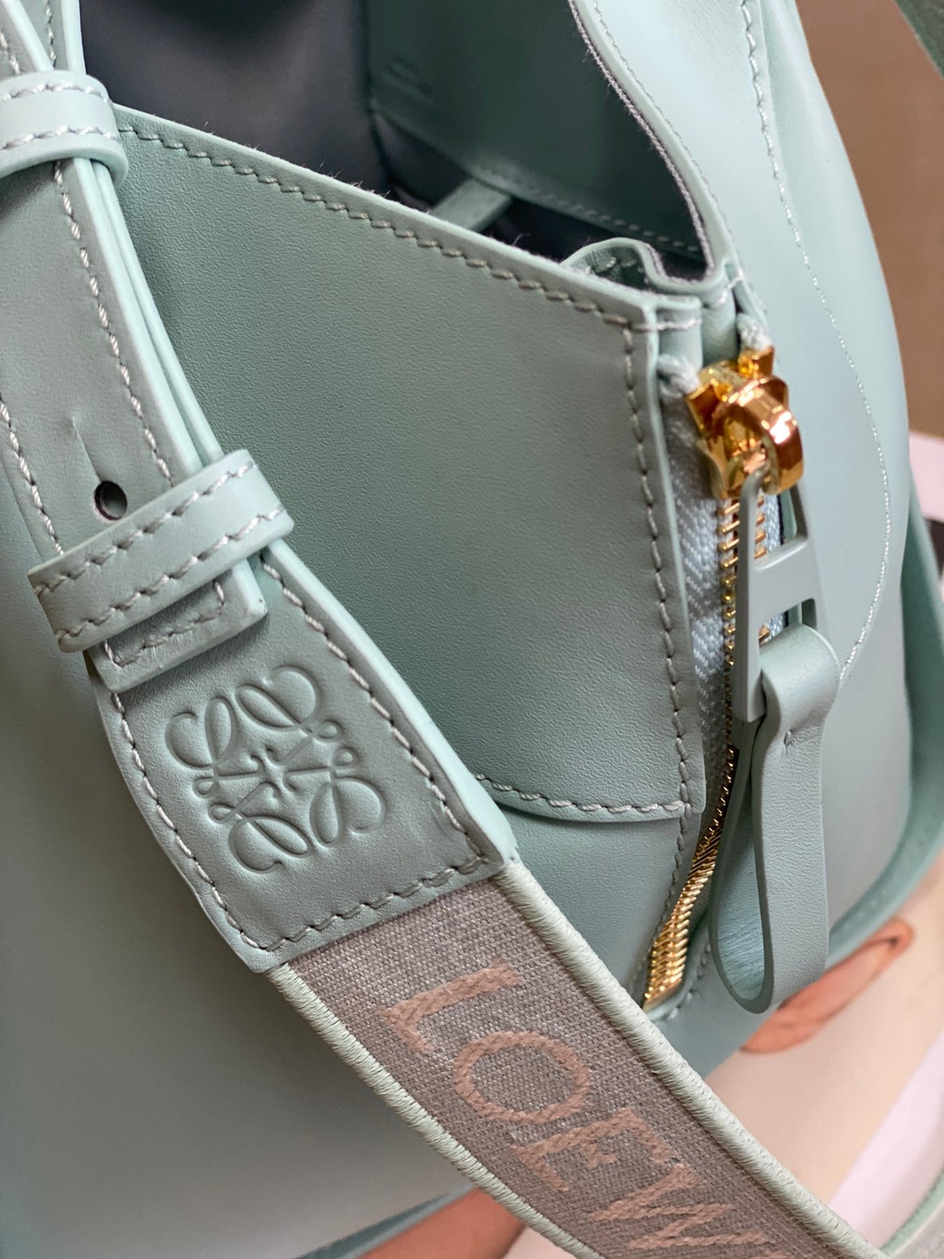 Loewe 1202 Light Blue Satin Cow Leather Compact Hammock Handbag