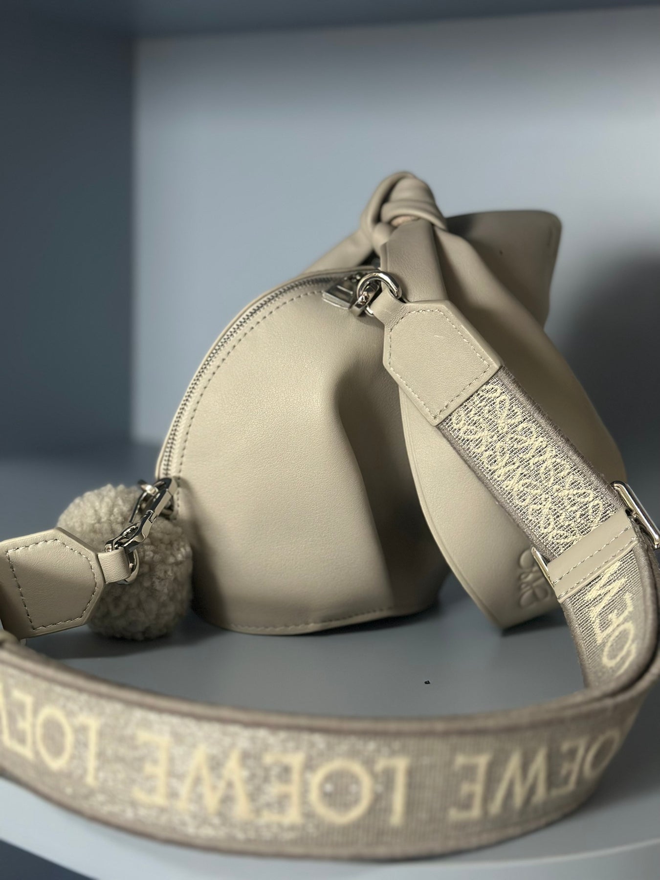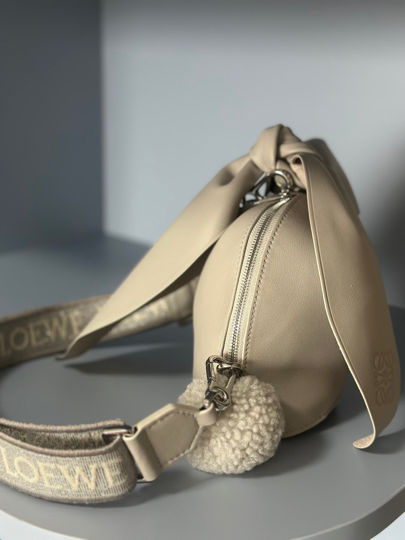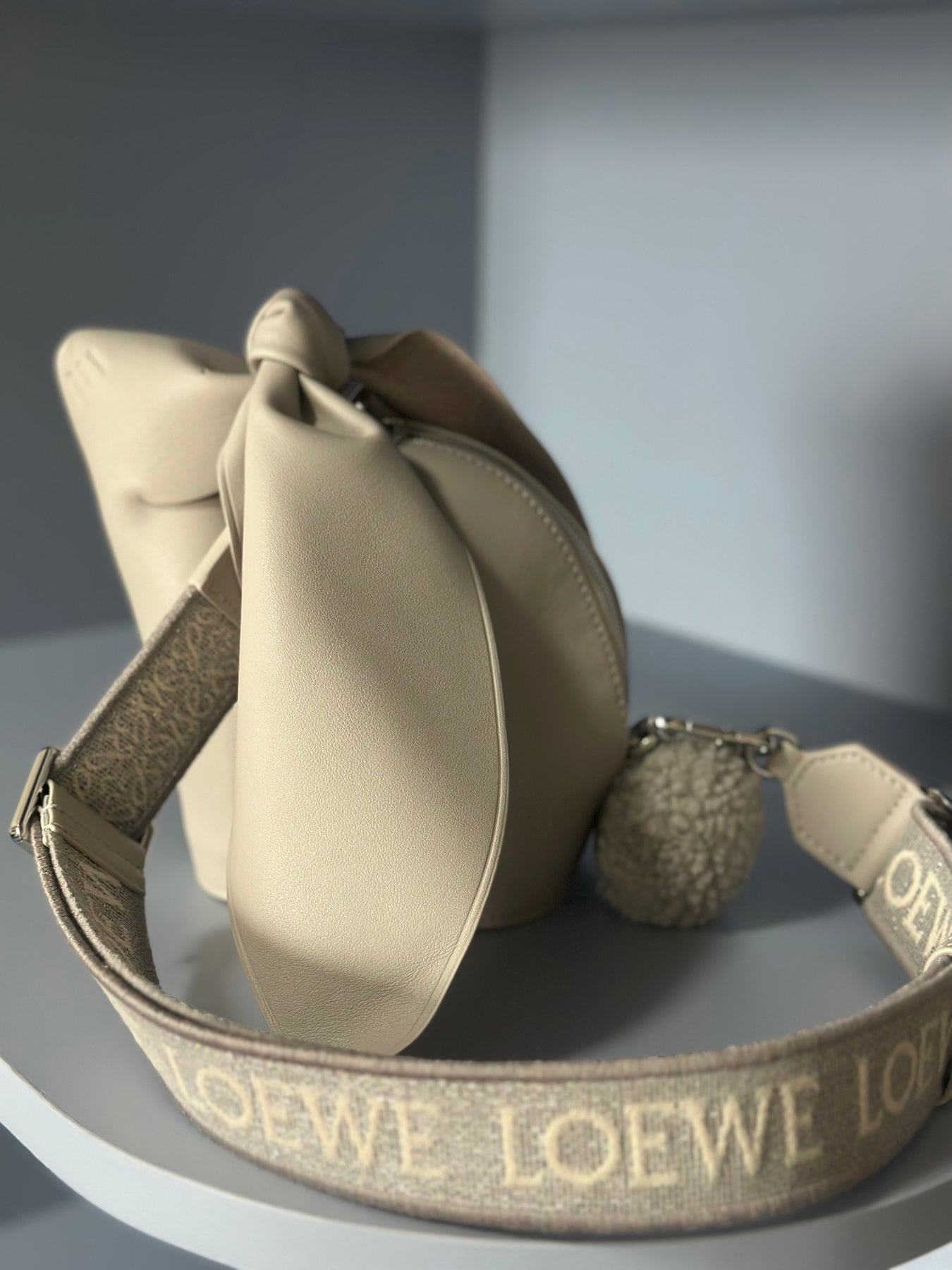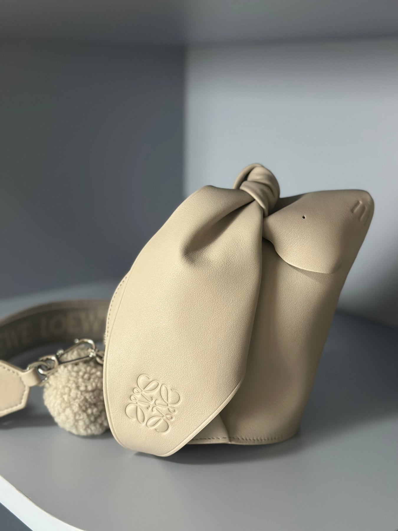 Introducing the Loewe 2023 Limited Edition Rabbit Bag, a luxurious accessory crafted from high-quality genuine leather. Featuring a beautifully coordinated wide webbing strap in the same color, this bag effortlessly combines style and practicality.