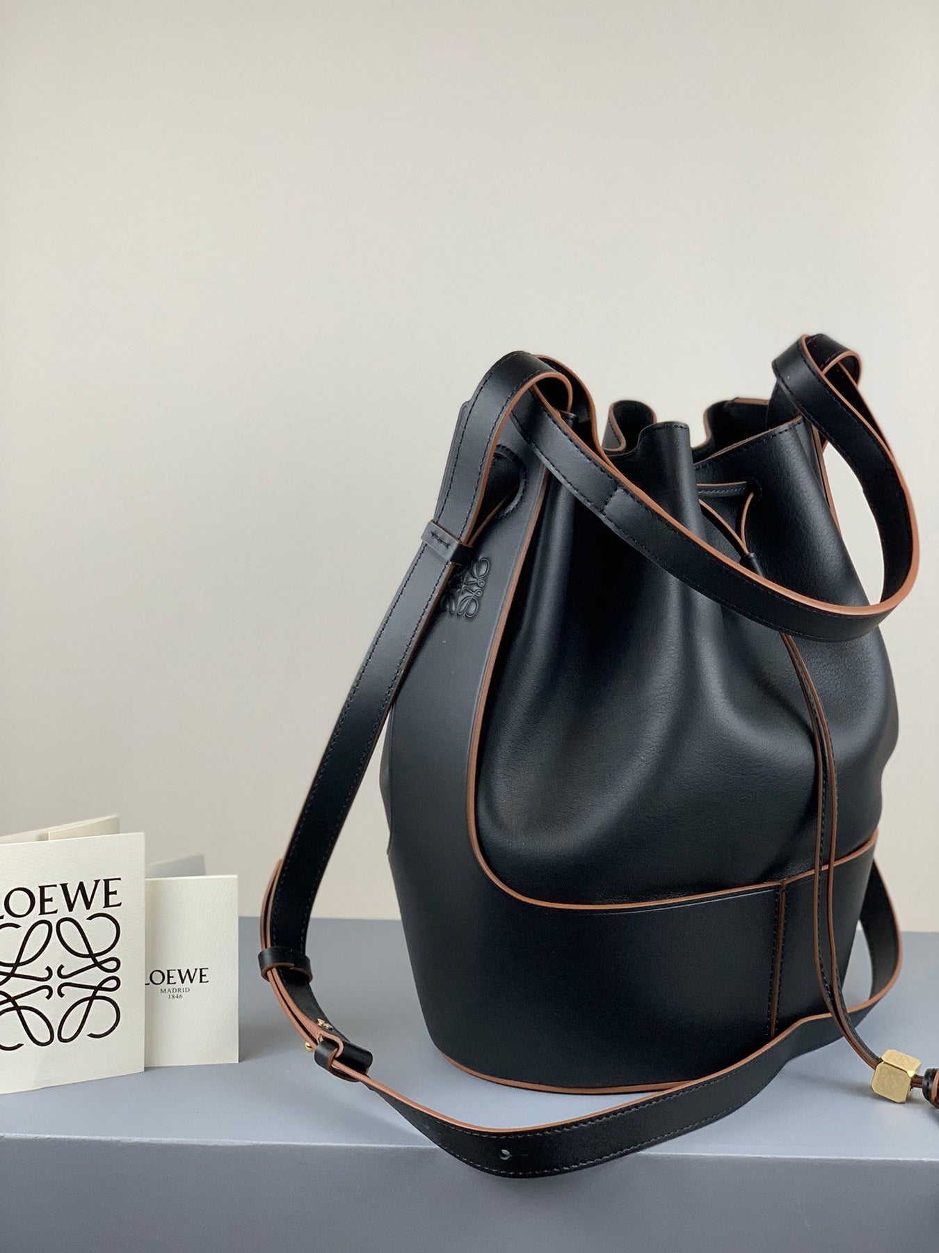 Discover the elegance of the Loewe Balloon Bag in a chic medium size. Crafted from genuine materials, this drawstring bag features a unique structure that combines classic proportions with a modern silhouette. The rigid outer base complements a soft inner bladder, ensuring durability while maintaining a lightweight and comfortable fit.