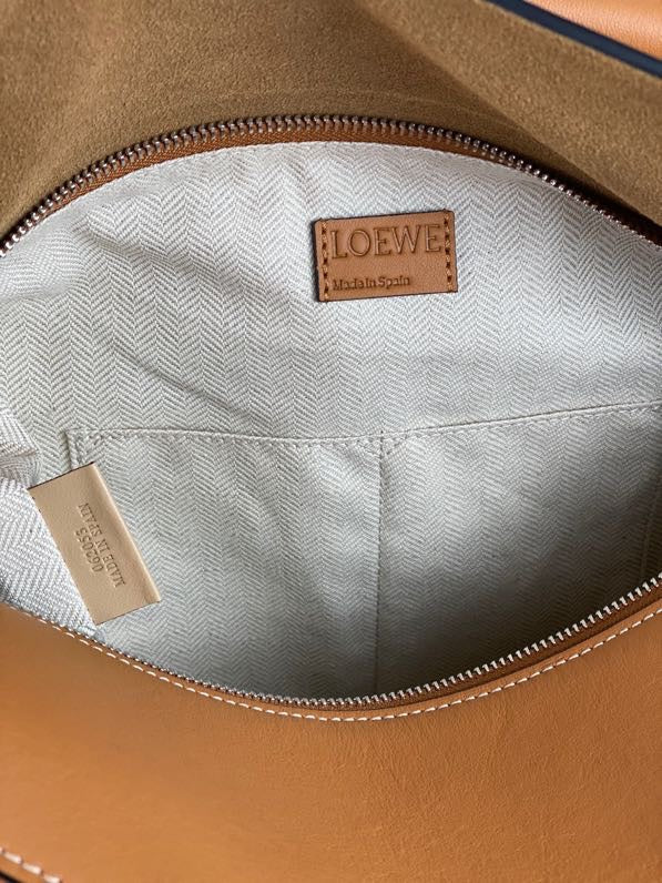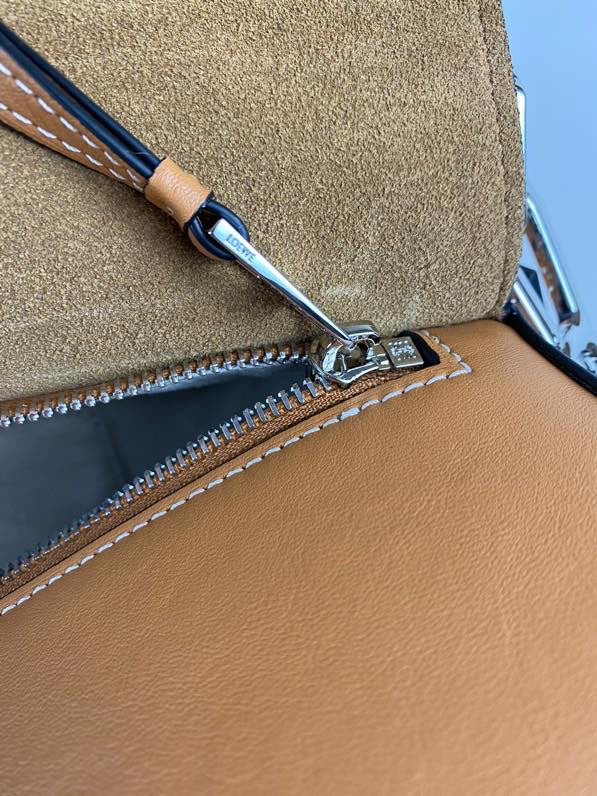 Inside, find thoughtful organization with two sliding pockets and a rear zip pocket, all lined with durable canvas. Whether you're heading to a casual outing or a formal event, the Loewe Large Puzzle Handbag effortlessly elevates your style.