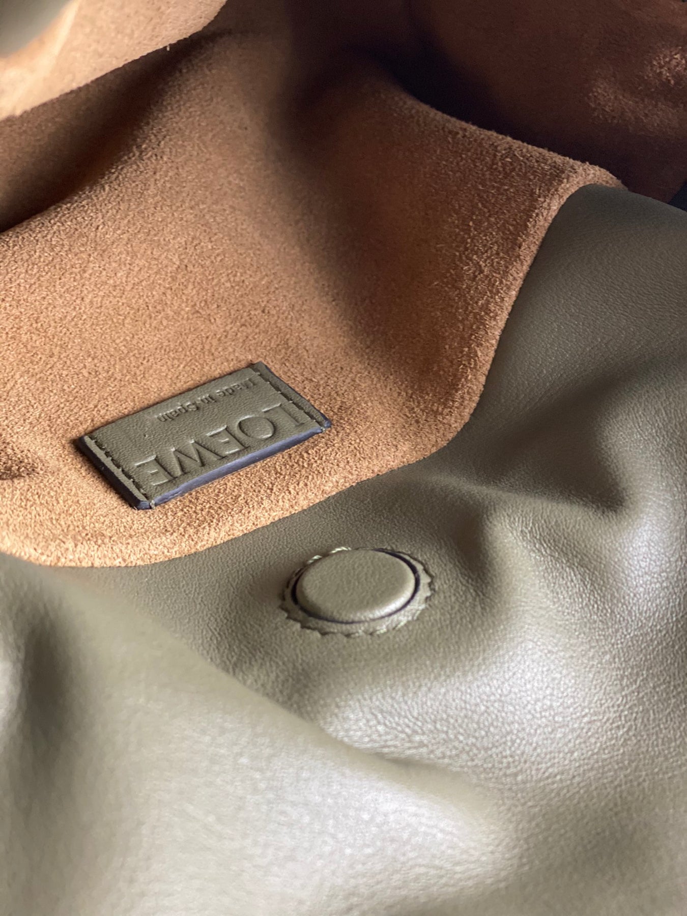Discover the elegance of the Loewe Mini Flamenco Knot Bag, a luxurious piece crafted from premium soft calfskin leather in a stunning avocado green hue. This versatile bag features a unique drawcord closure, elegantly tied with Loewe's signature coiled knot. With dimensions of 23cm x 18cm x 9cm, it offers ample space for your essentials.