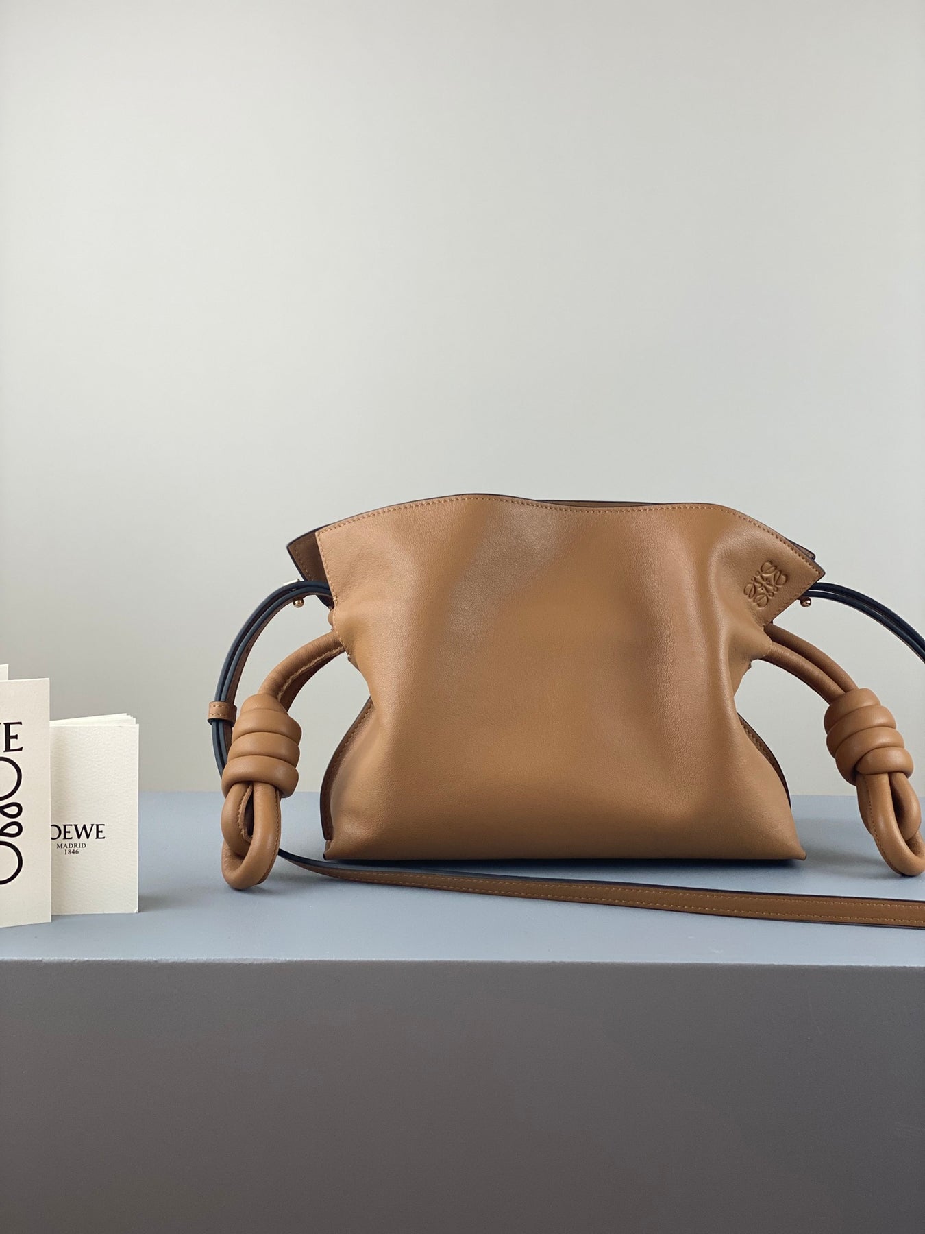 Loewe Mini Flamenco Knot Bag in Light Brown Calfskin