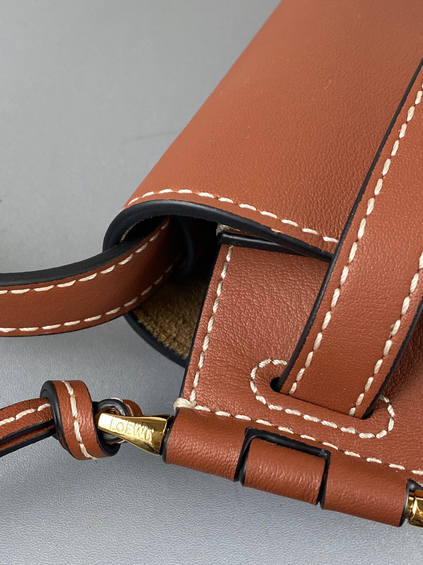 LOEWE Mini Gate Dual Handbag in Amber/Light Grey/Rust - Soft Cow Leather