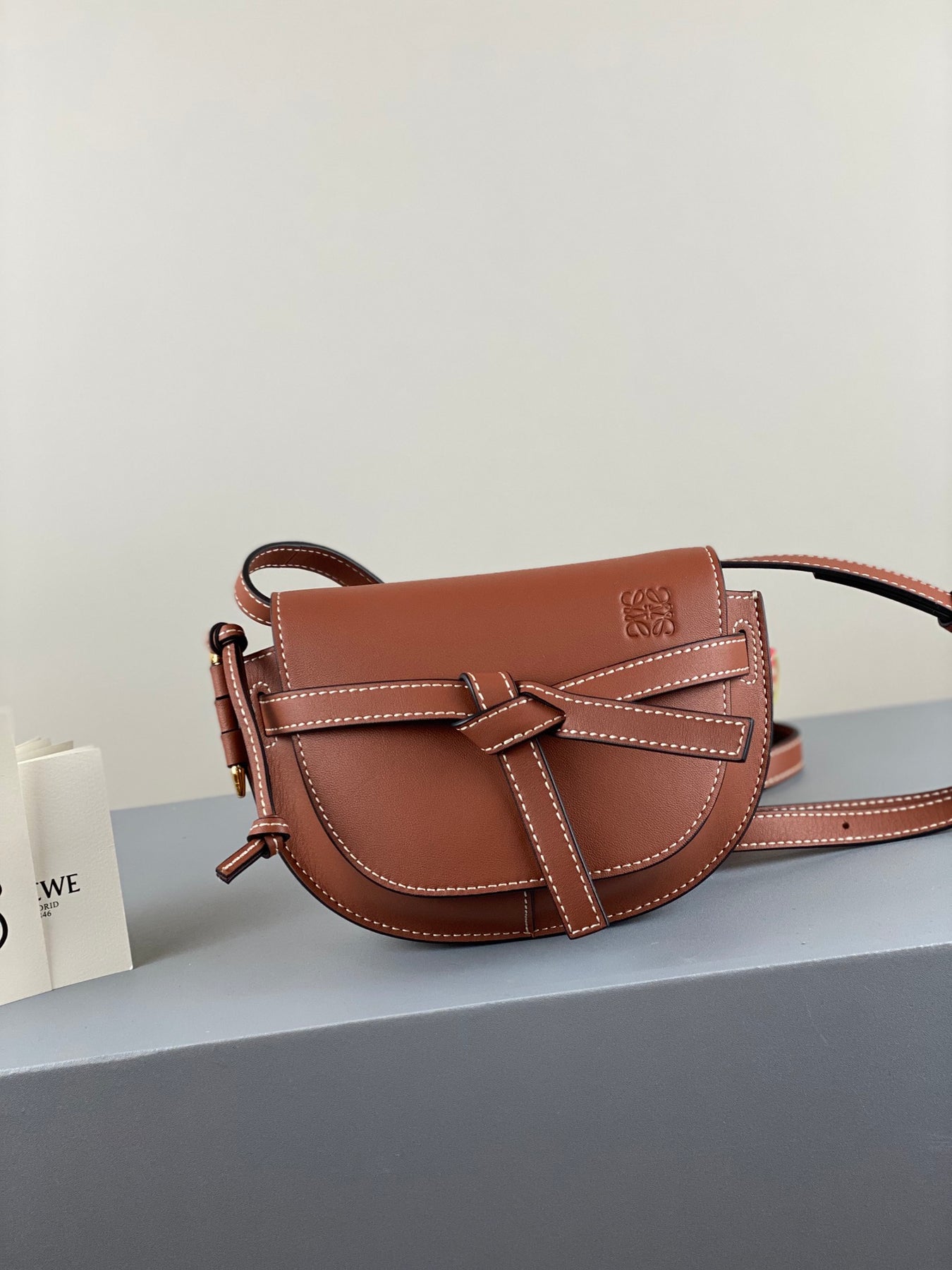 Introducing the LOEWE Mini Gate Dual Handbag, expertly crafted from authentic soft cow leather. This stylish accessory showcases the brand's unparalleled leather craftsmanship and comes in an elegant Amber/Light Grey/Rust color combination.