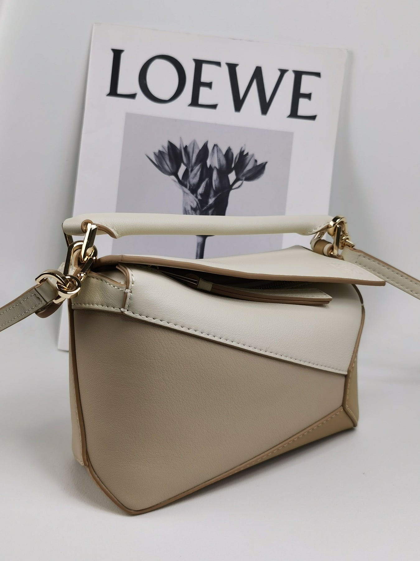 LOEWE Mini Puzzle Bag in Gray Beige/Gold - Classic Calf Leather