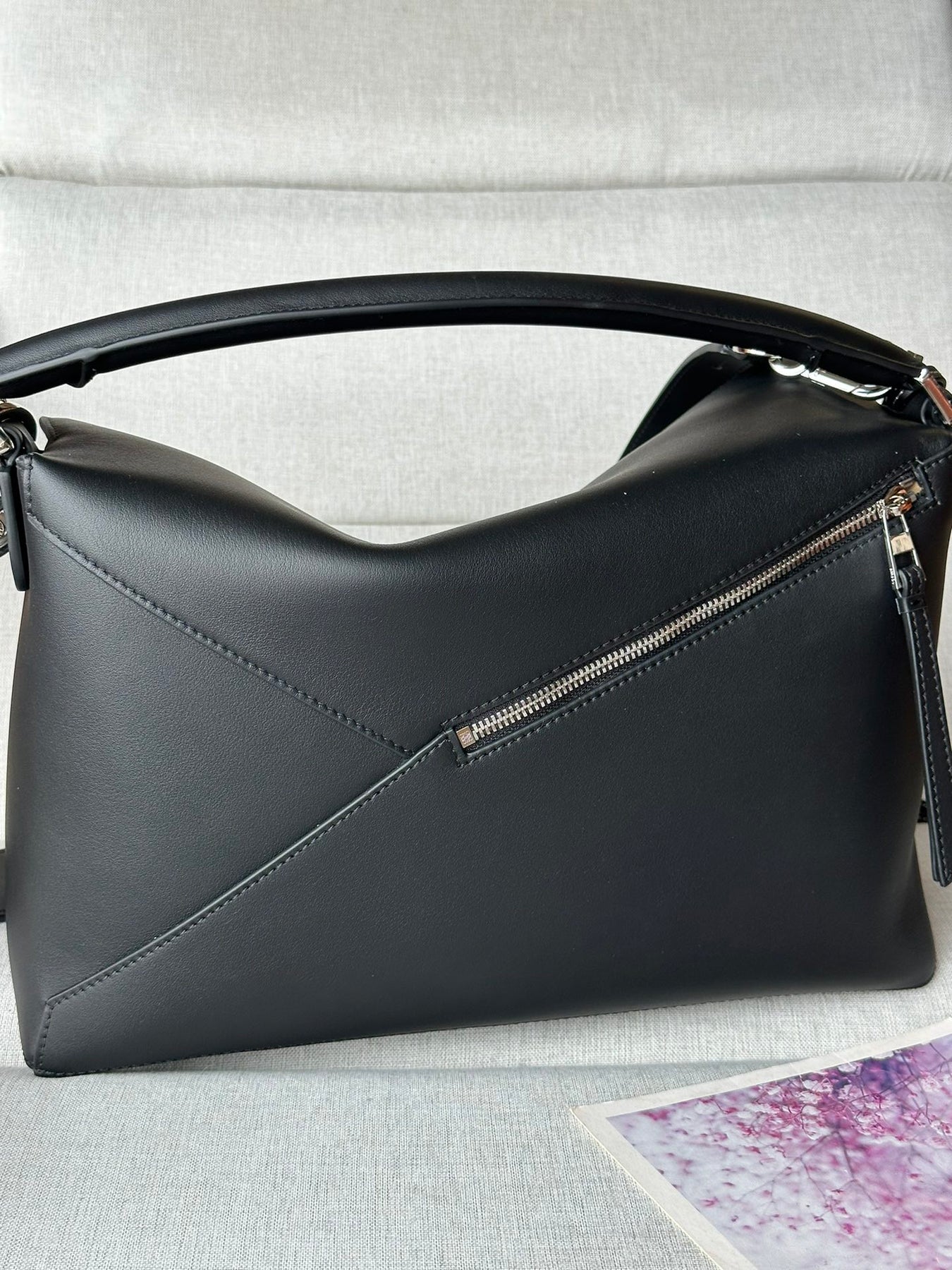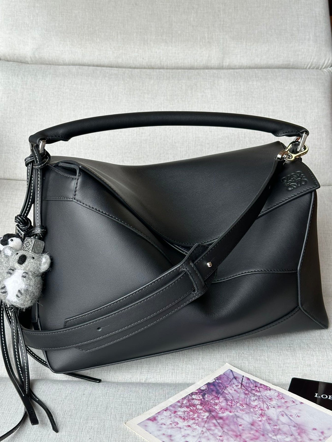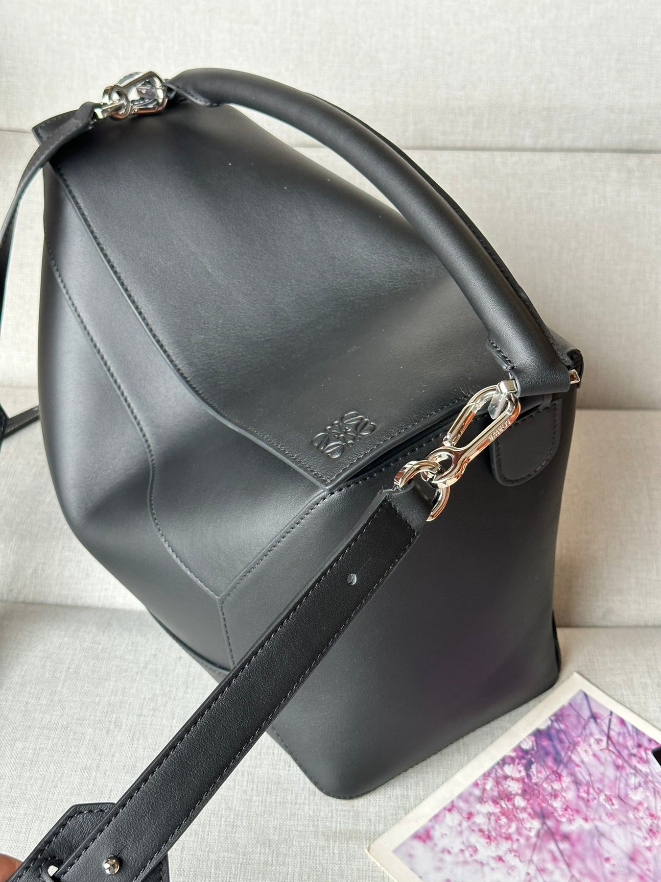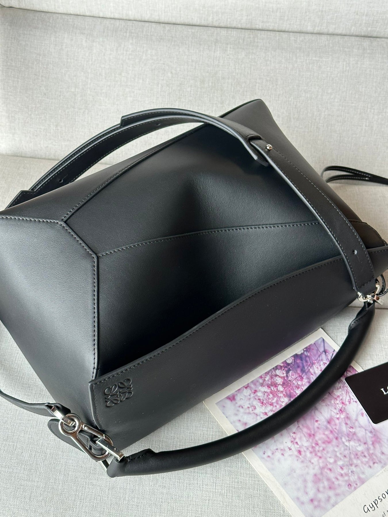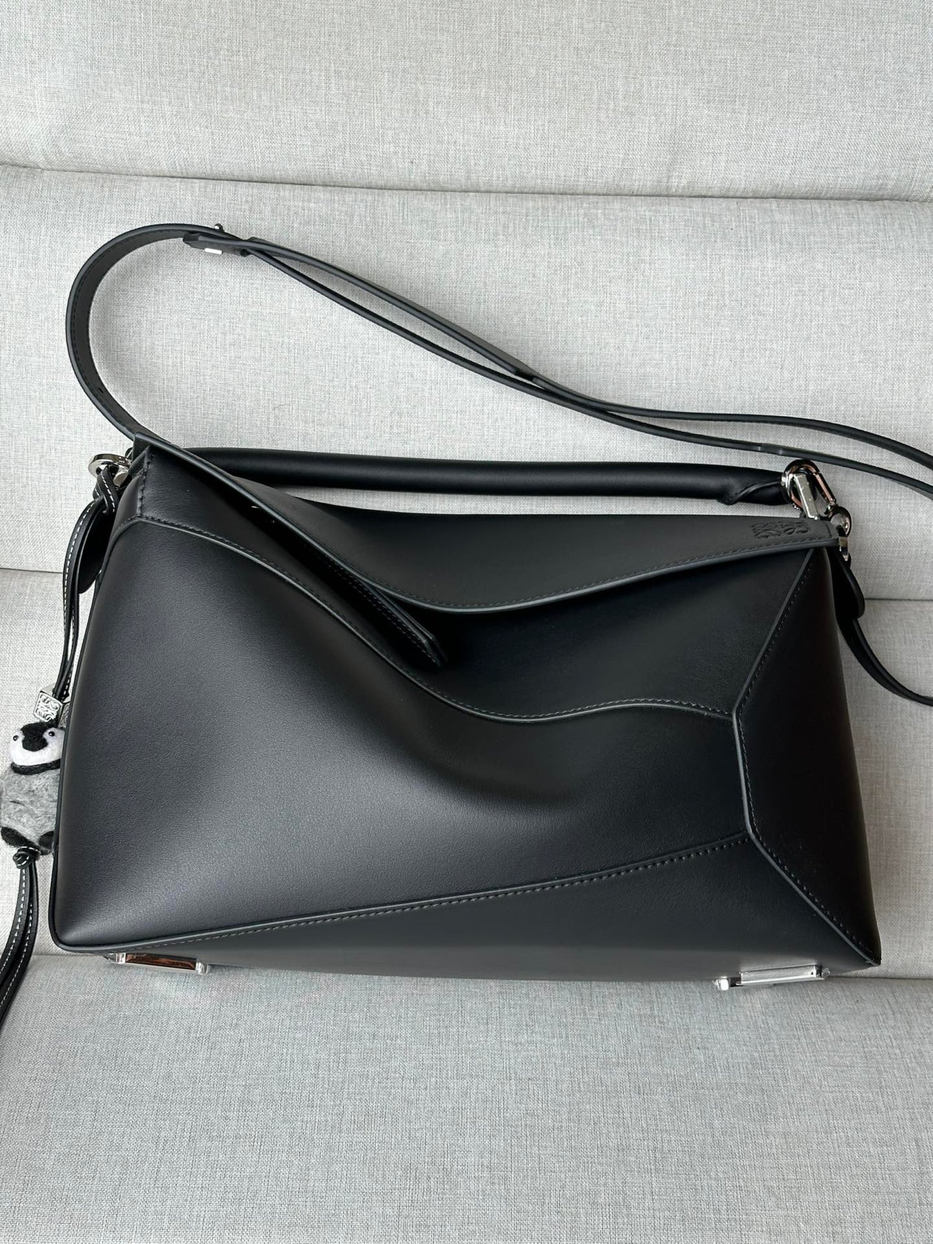 Discover the stunning LOEWE Puzzle Bag, designed by renowned creative director Jonathan Anderson. Crafted from premium glossy cowhide leather, this handbag features a unique cuboid shape with precise geometric lines and overlapping edges for a modern touch.