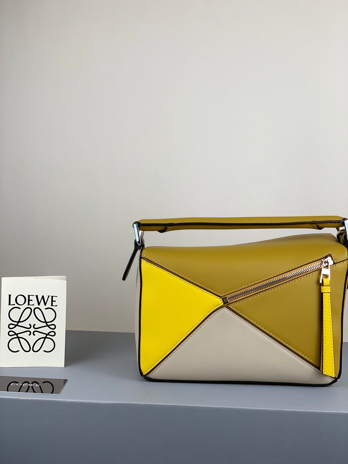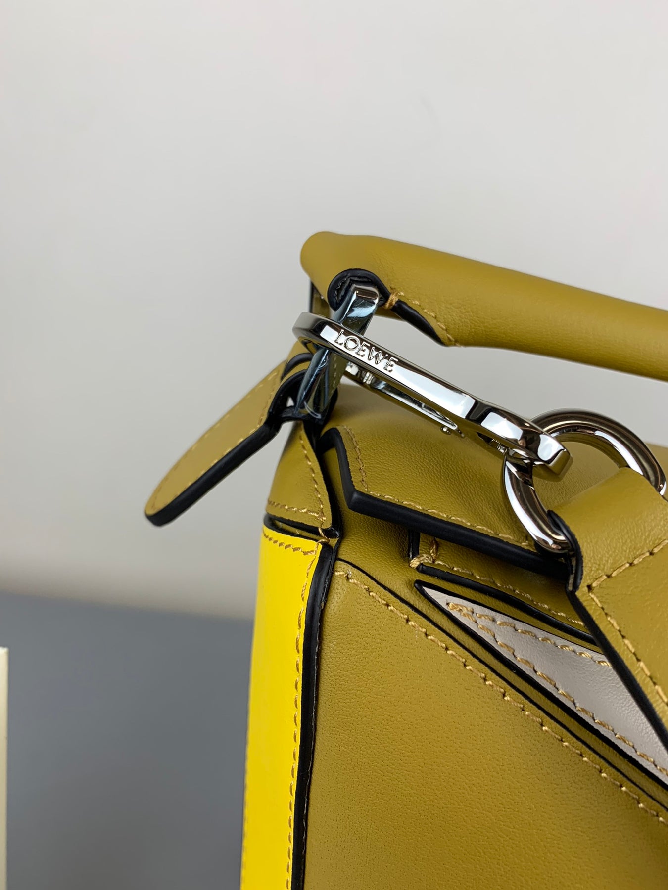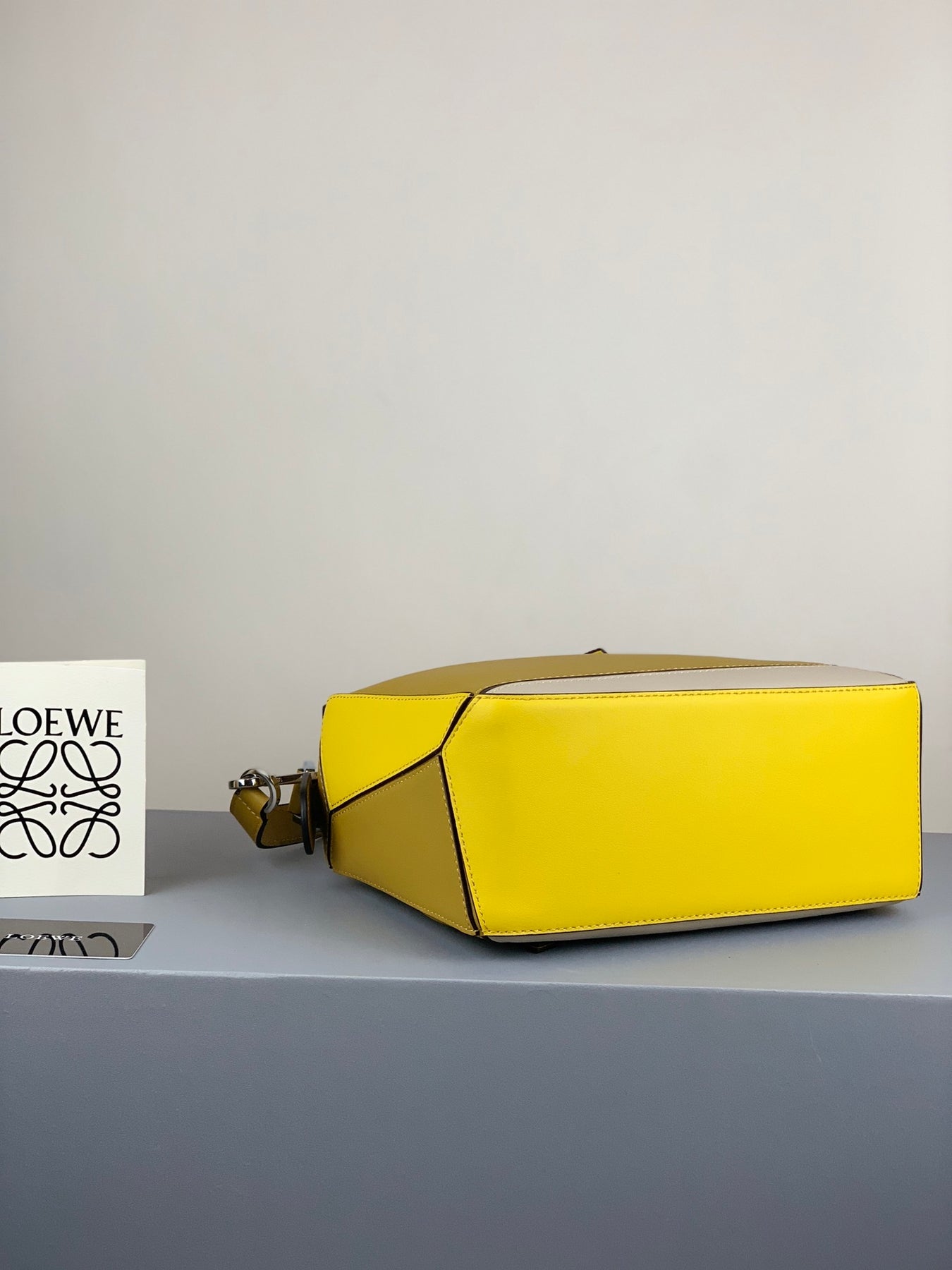 Introducing the Loewe Puzzle Trumpet Bag in a striking ocher yellow combination, the latest addition to our premium collection. Expertly crafted from imported Spanish calfskin, this bag features a luxuriously soft texture that feels as comfortable as cotton. Its precisely cut leather allows for a natural fold, making it versatile and easy to carry by hand or as a cross-body accessory.