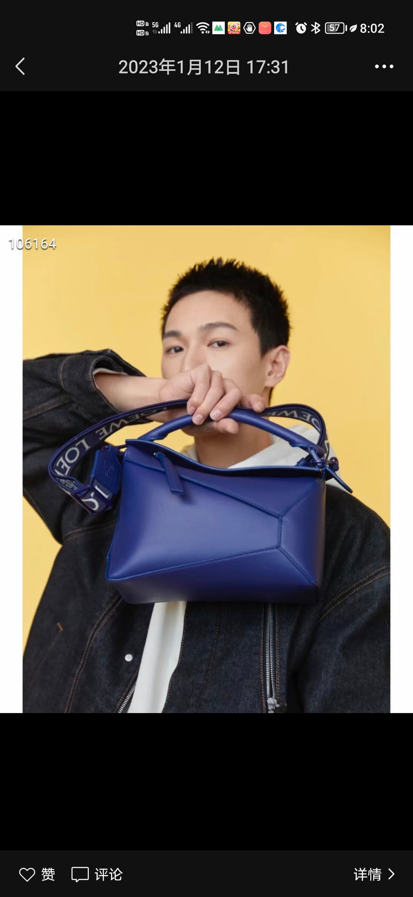 LOEWE Small Puzzle Edge Bag in Blue Glaze - Genuine Leather Handbag