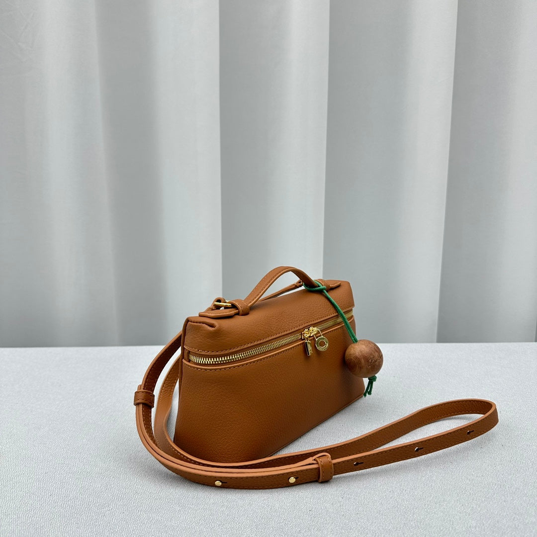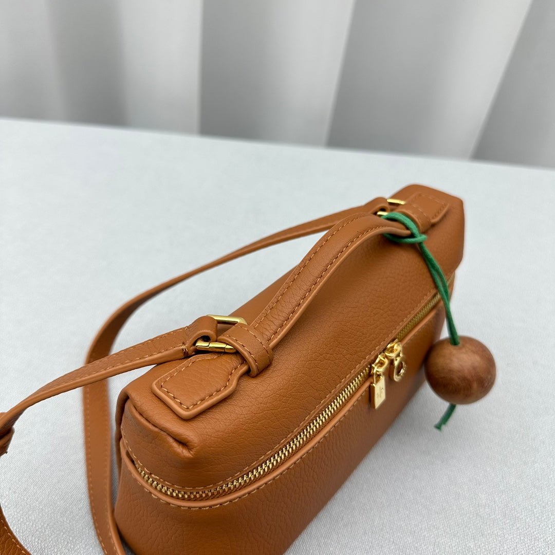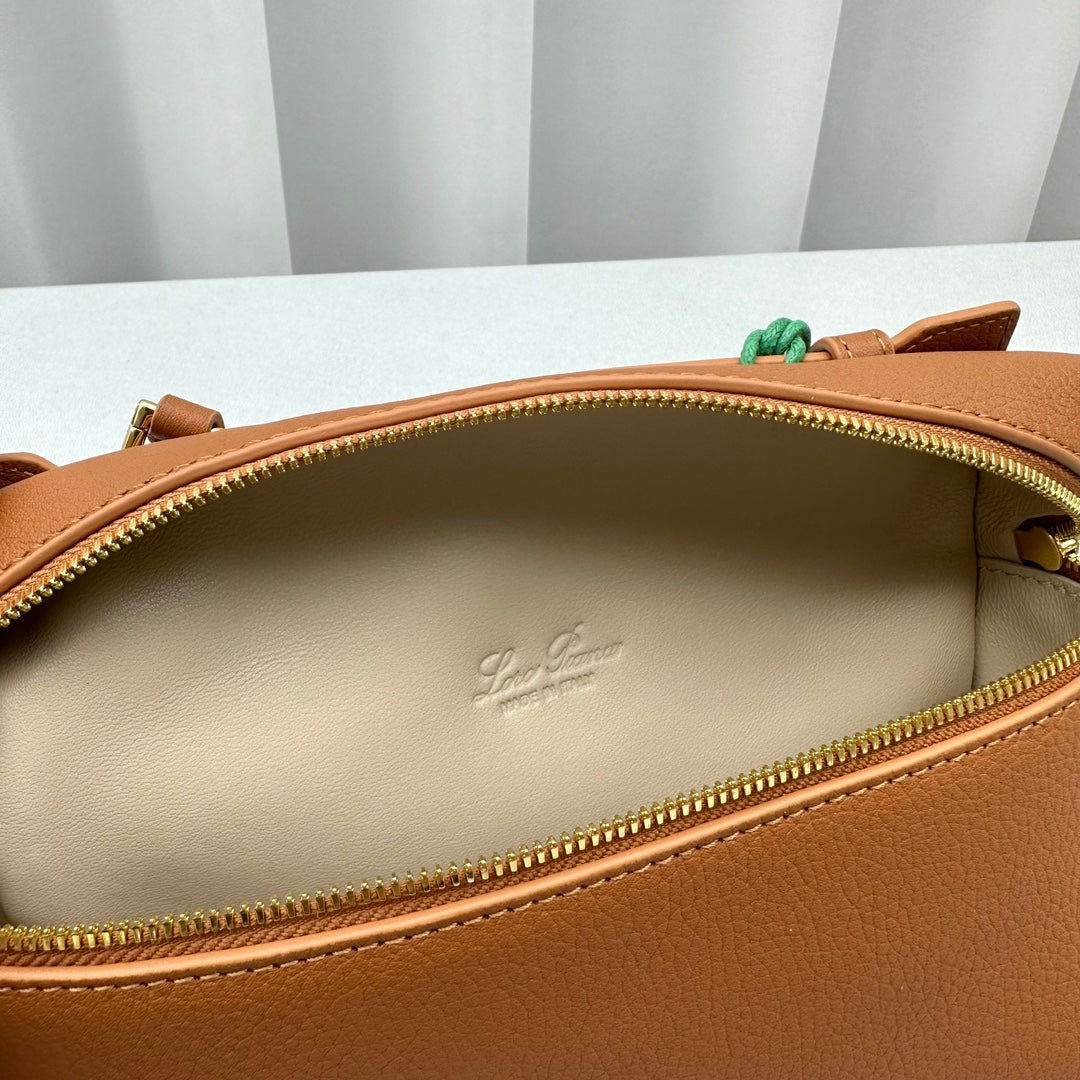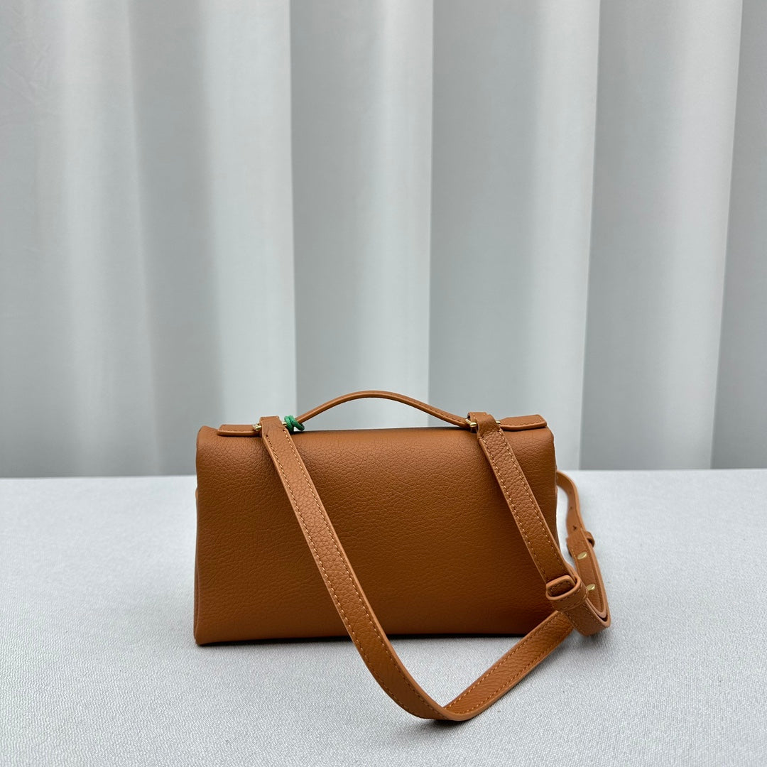 Introducing the upgraded Loro Pia Pocket Cowhide Handbag in a sophisticated small size and light brown hue. This elegant handbag features a lightweight design, making it perfect for everyday use while maintaining a classic aesthetic. Crafted from premium grained cowhide leather, it offers a soft, scratch-resistant finish that enhances durability without compromising style.
