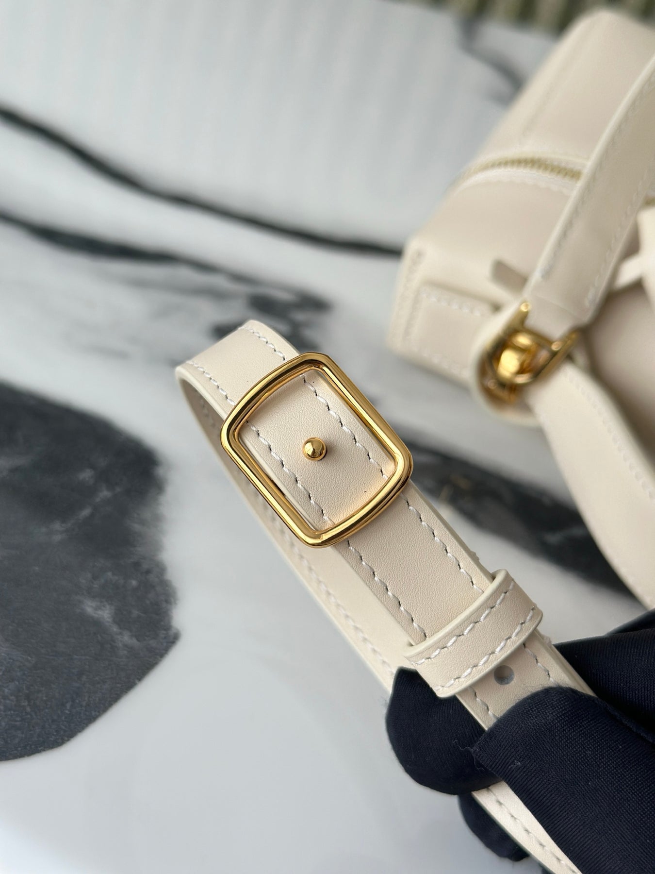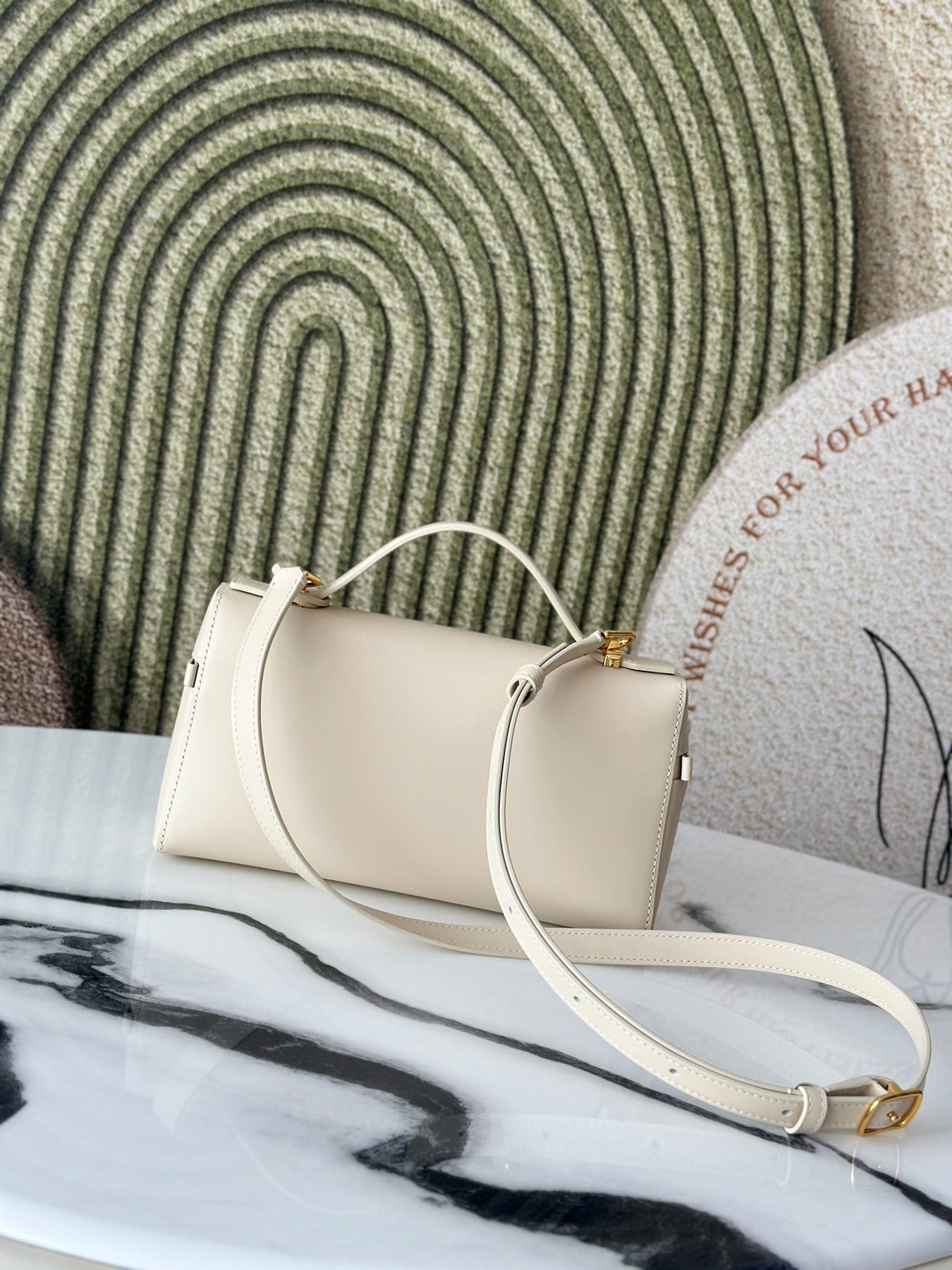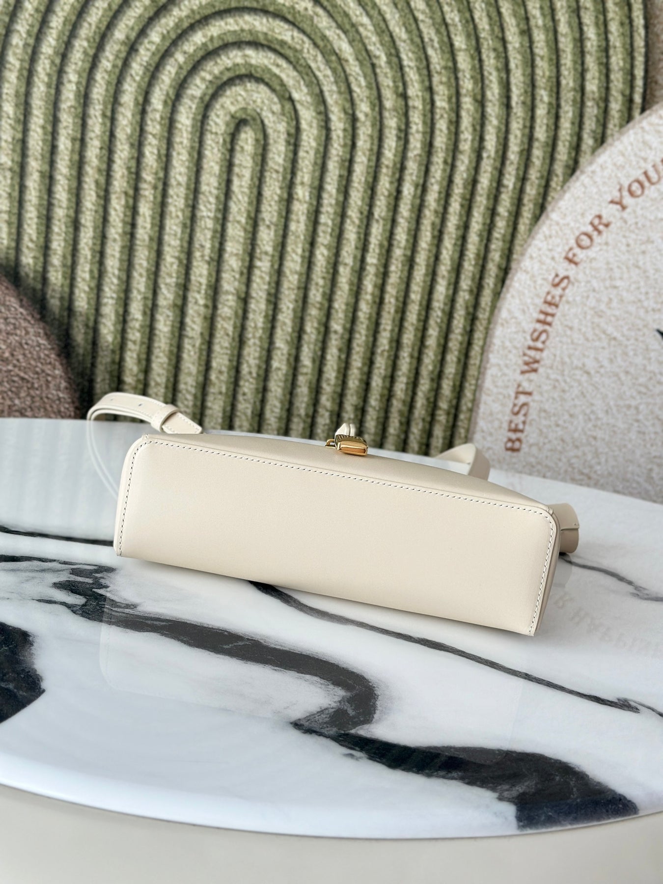 Introducing the Loro Pian Handbag in Cream White, part of our L23 Spring and Summer Series. This versatile handbag features an elegant old money style with a modern twist, crafted from high-quality saddle leather for a luxurious look and feel. The detachable shoulder strap allows you to transform it into a chic crossbody bag for effortless style on the go. With a generous capacity and multiple internal pockets, this bag combines practicality with sophisticated design. Elevate your accessory collection with the Loro Pian Handbag – perfect for any occasion. Size: 23cm.