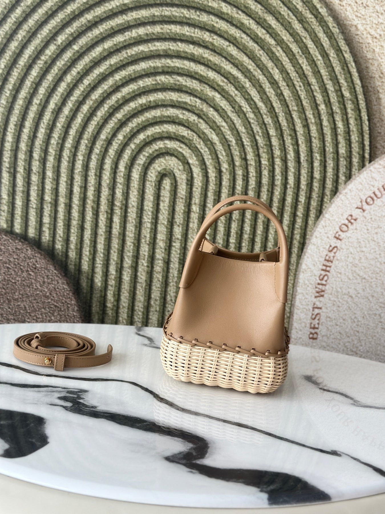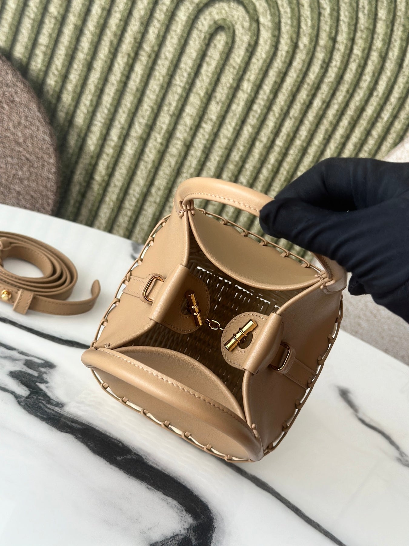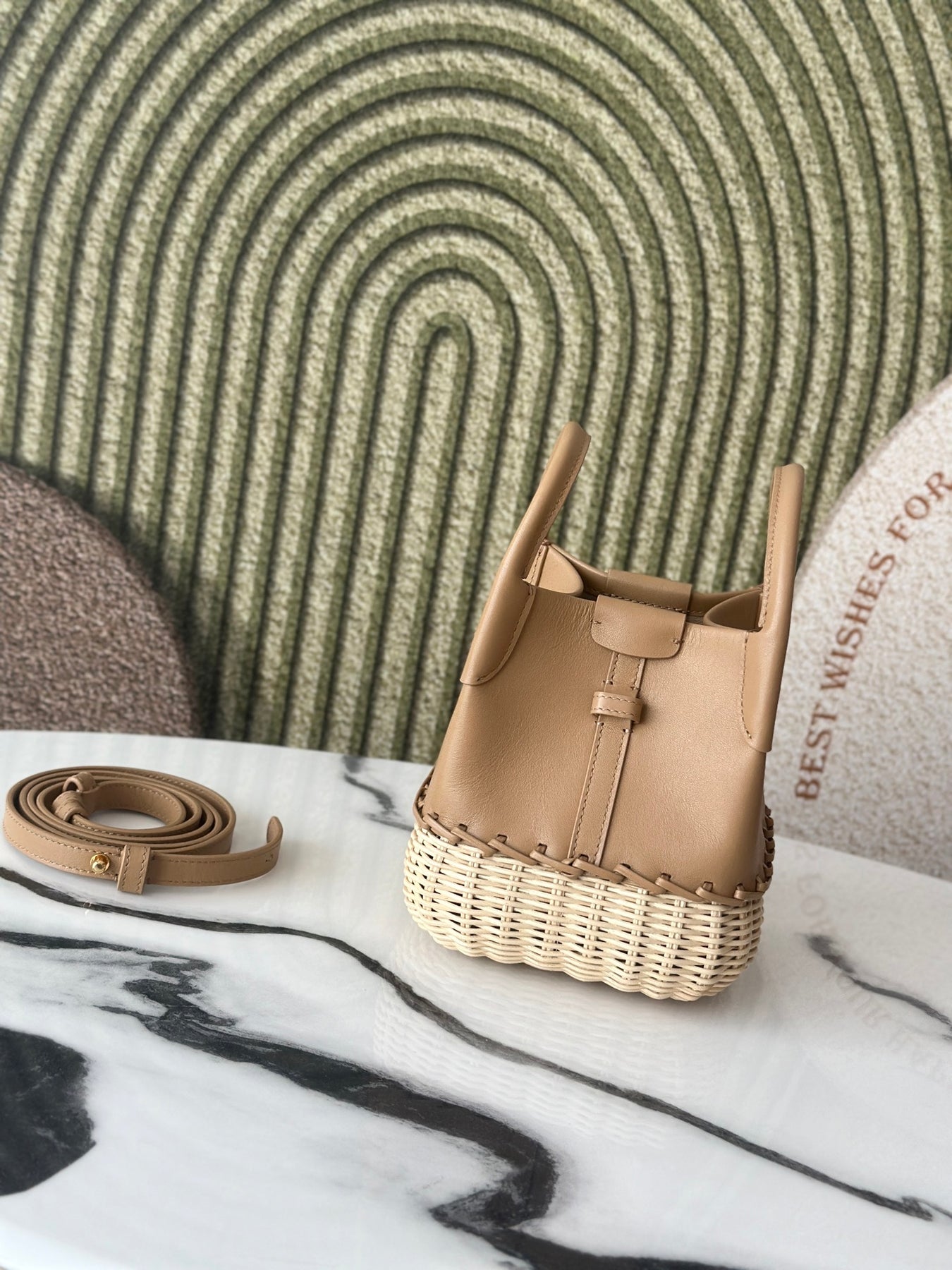 Loro Piana Bamboo Woven Bucket Bag - Luxury Calf Leather Handbag