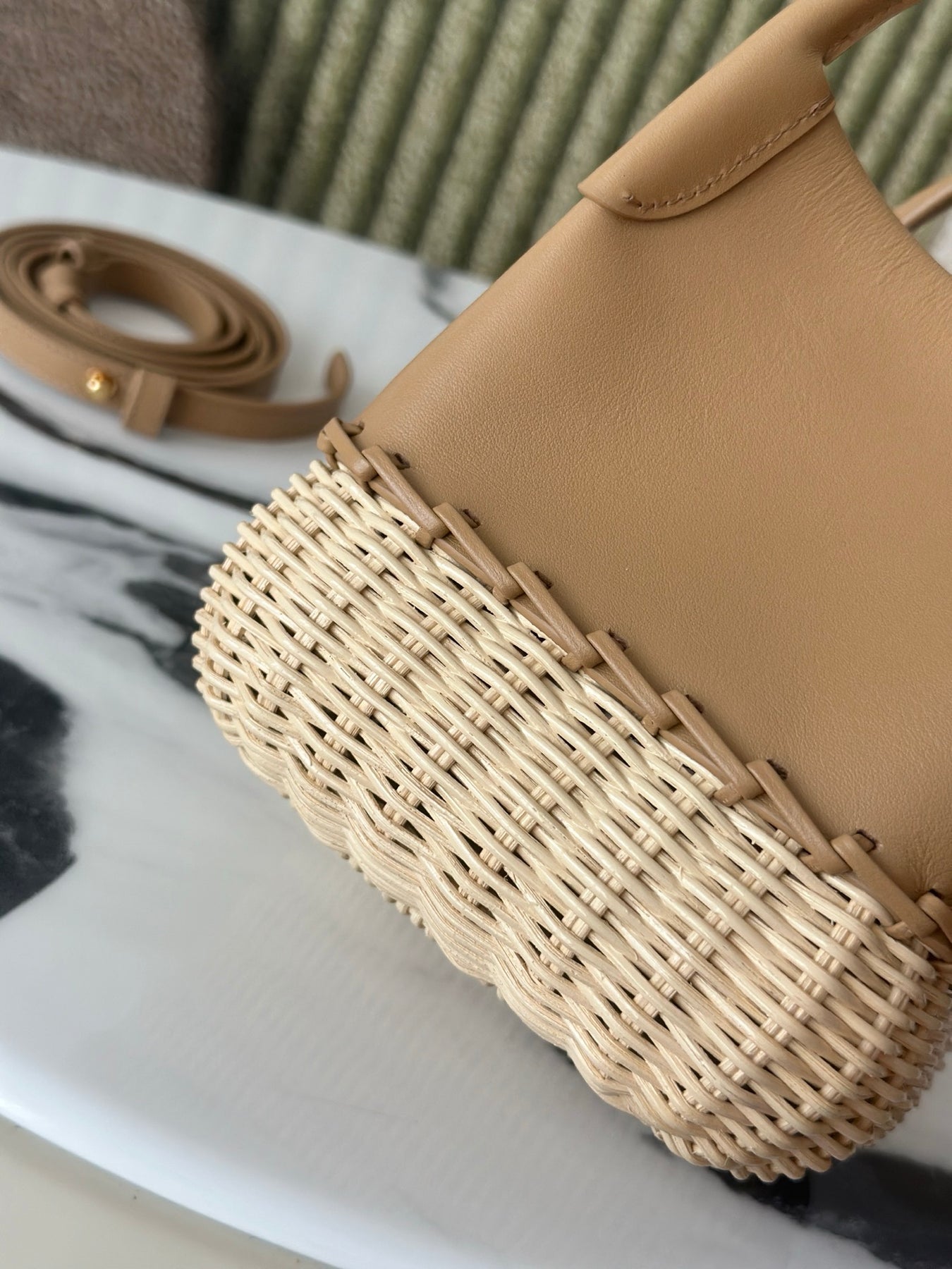 Introducing the Loro Piana Bamboo Woven Bucket Bag, the must-have accessory of the year. Crafted from premium French calf leather and featuring all-steel hardware, this bag exudes both classic elegance and sophistication.