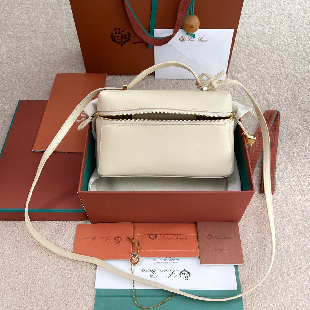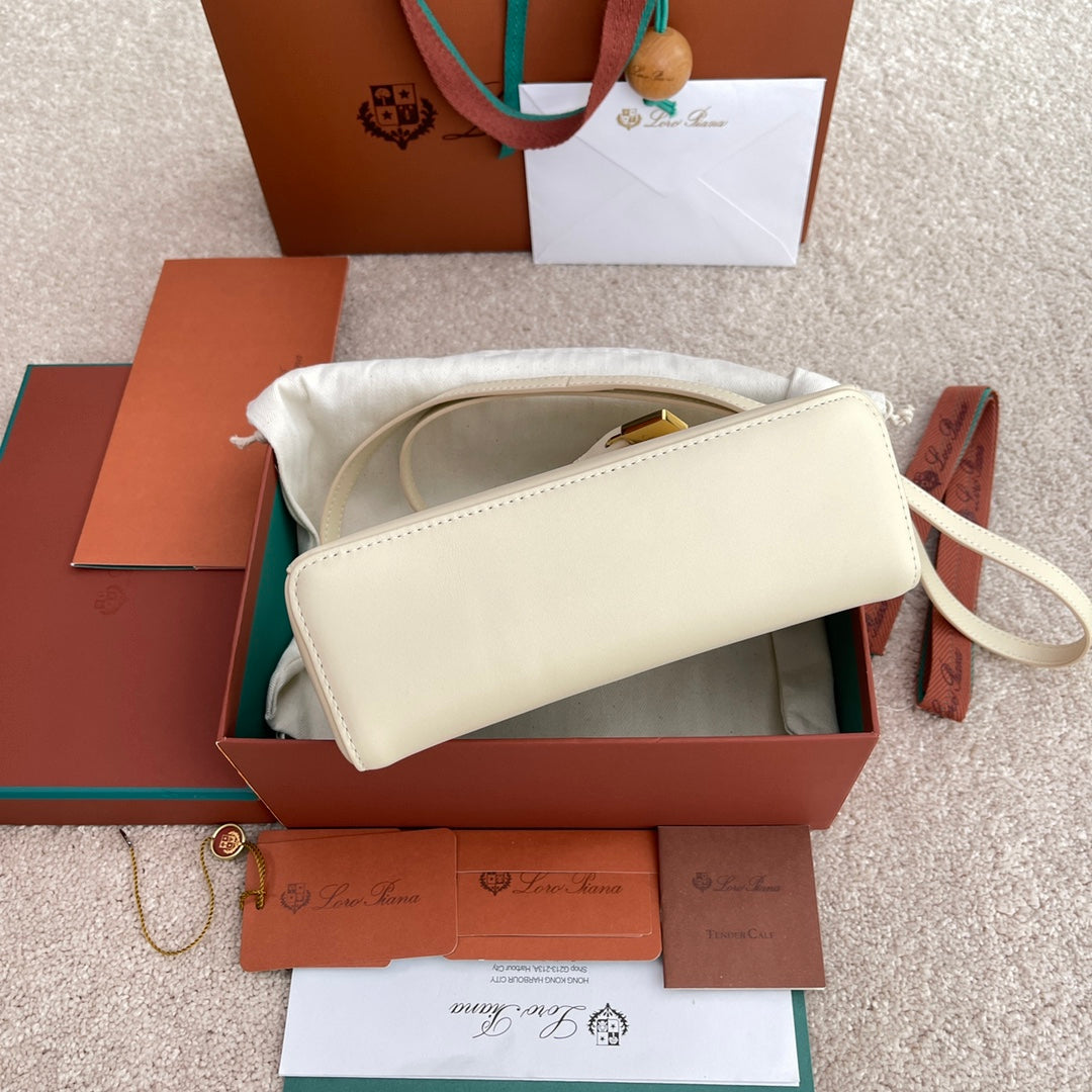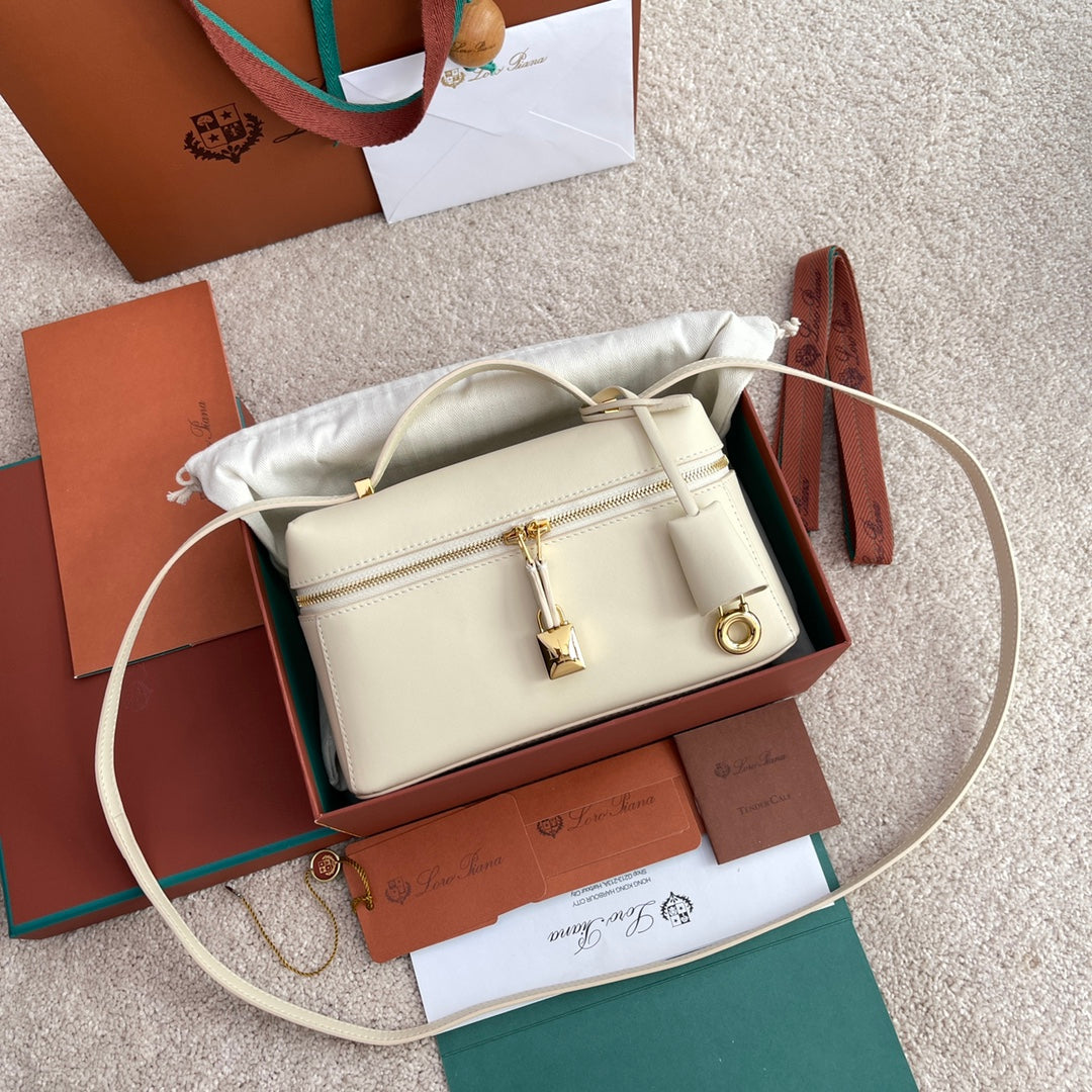 ** Loro Piana Extra Bag L19 – Versatile White Leather Pouch with Gold Hardware