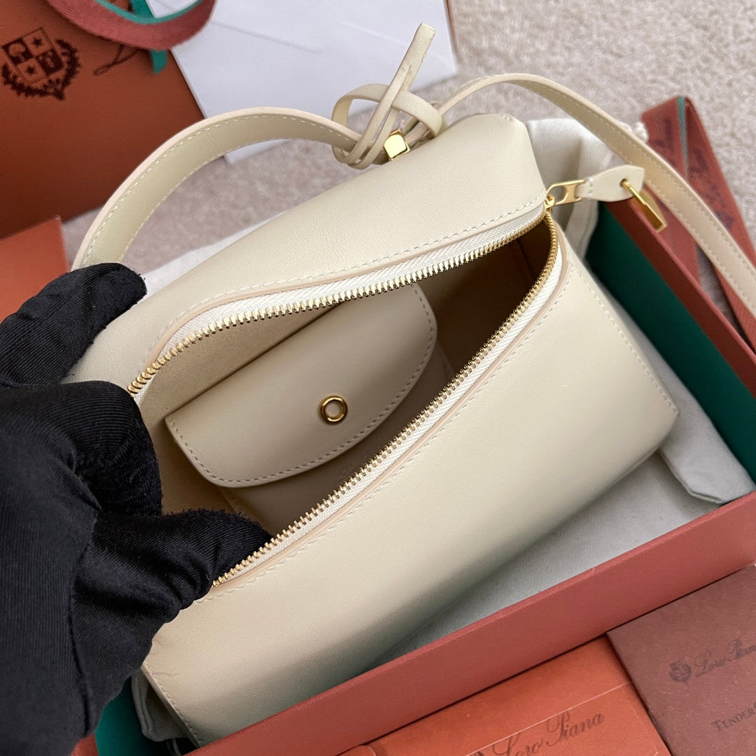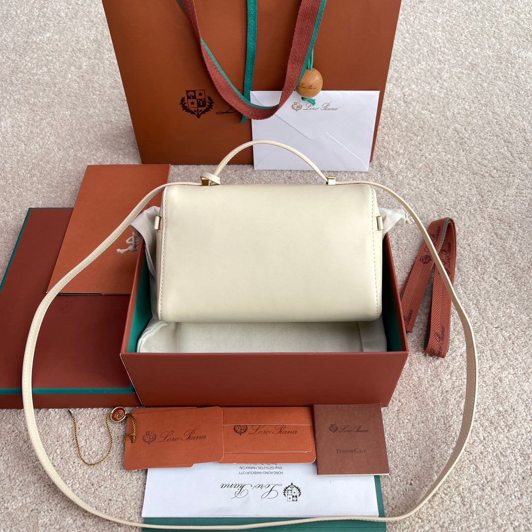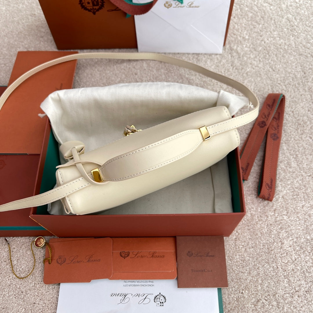 ** Loro Piana Extra Bag L19 – Versatile White Leather Pouch with Gold Hardware