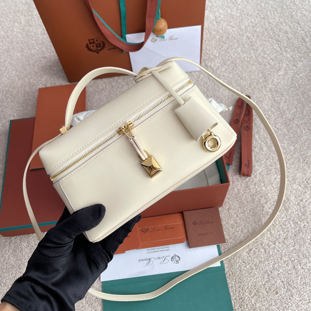 ** Loro Piana Extra Bag L19 – Versatile White Leather Pouch with Gold Hardware **