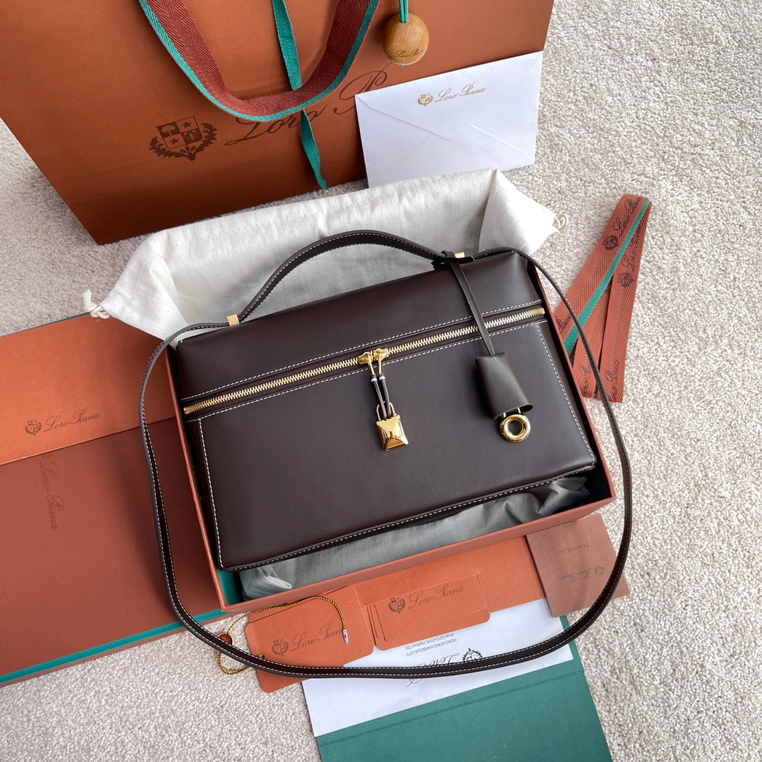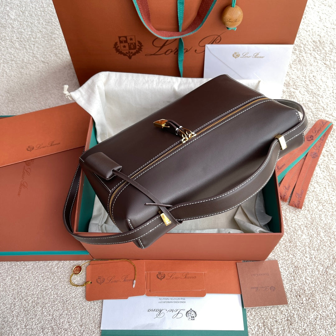 Loro Piana Extra Bag L27 - Premium Leather Pouch with Gold Hardware