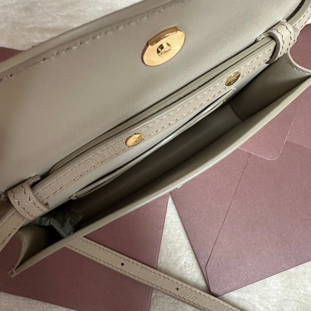 Elevate your accessory collection with the Loro Piana Pickette Clutch Bag, part of the esteemed Extra collection. Crafted from premium calfskin, this sophisticated clutch features a stunning Light Frankincense palm print design. Its versatile shoulder strap allows you to wear it gracefully over your shoulder or carry it as a stylish clutch. Meticulously designed for those with discerning taste, this bag exemplifies elegance and functionality.