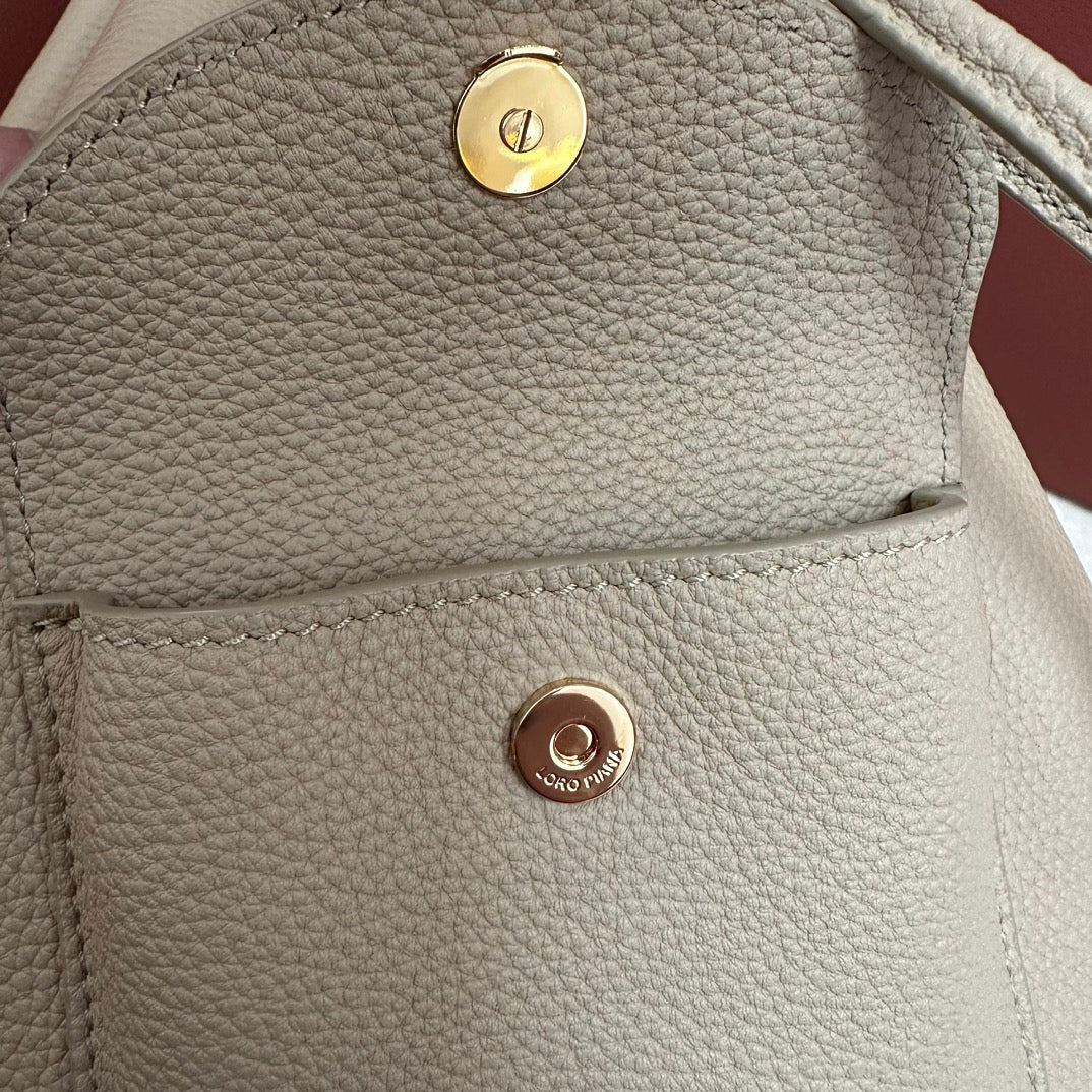 Introducing the Loro Piana Extra Drawstring Backpack in Light Frankincense—an elegant addition to your accessory collection. This versatile backpack seamlessly blends iconic style with practical functionality. Expertly crafted from premium calfskin, it offers a sophisticated design that can be comfortably worn on your back or stylishly slung over your shoulder. Measuring 25 x 27 x 14 cm, it’s the perfect size for your daily essentials, making it an ideal companion for any occasion. Elevate your everyday look with this beautiful and practical backpack.