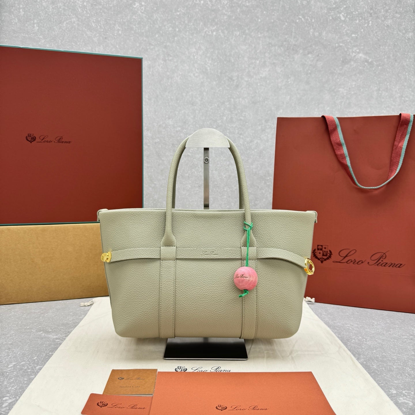 Loro Piana Ghiera Leather Tote Bag – Elegant Green Shopper