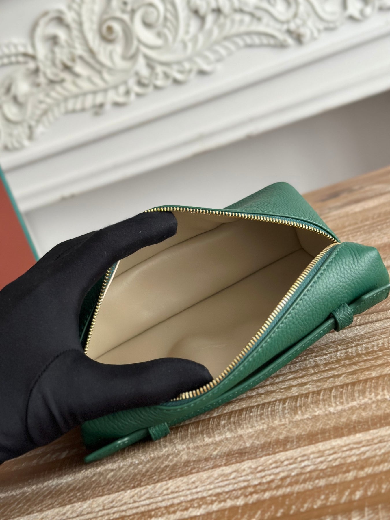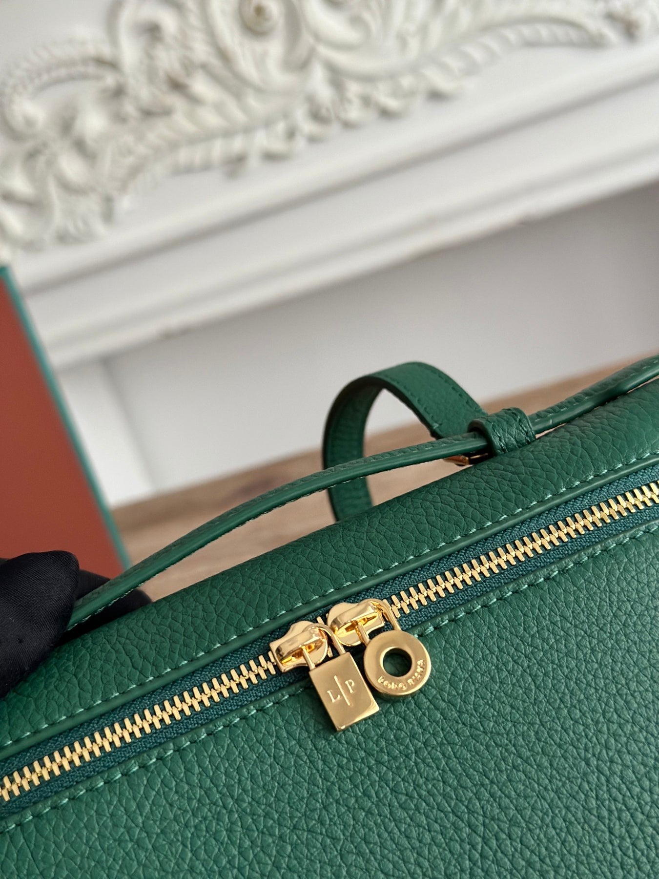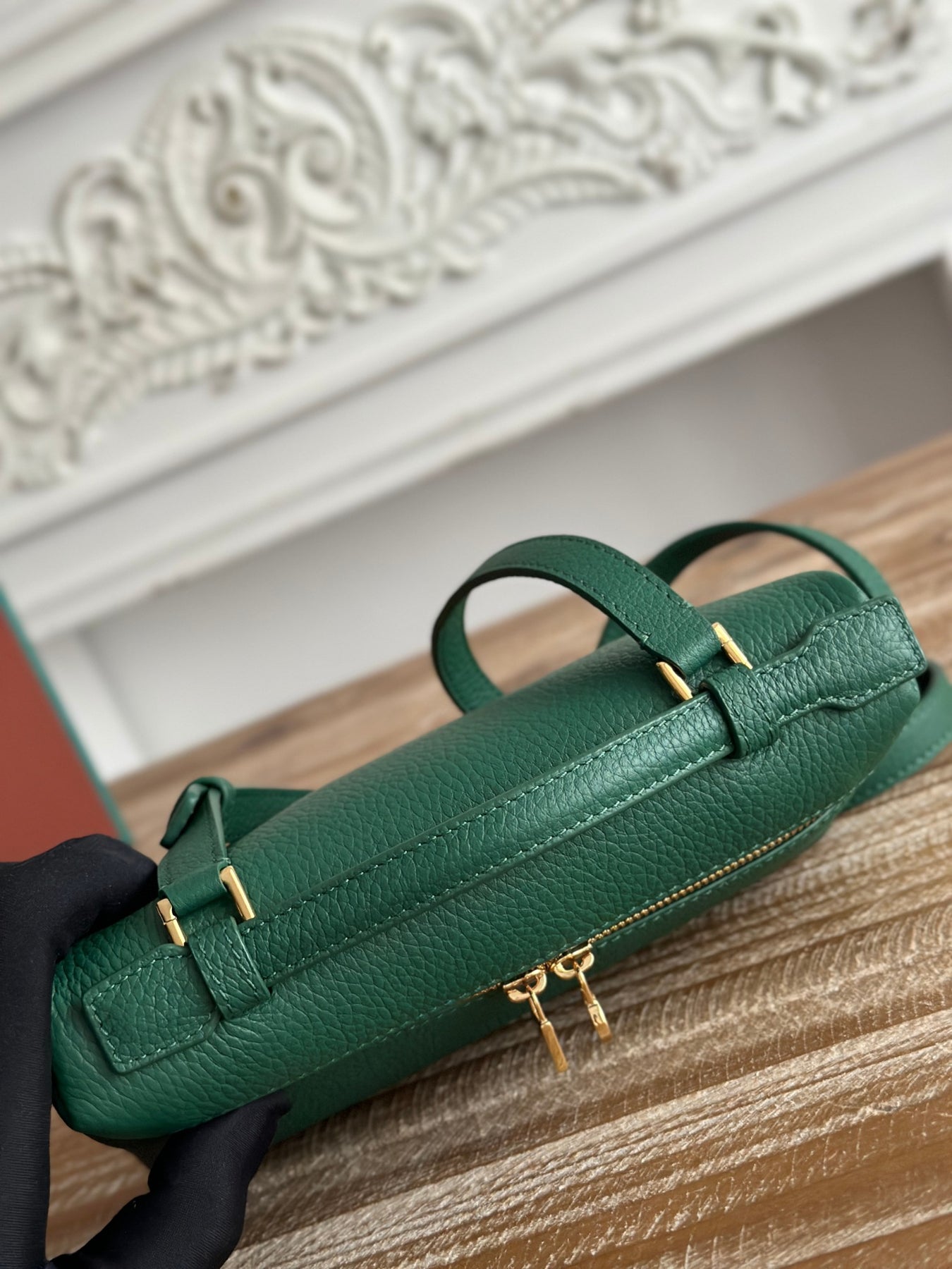 Discover the elegance of the Loro Piana L19 Malachite Green Handbag. This versatile bag features a sleek silver buckle and is designed for both style and functionality. Perfect for use as a shoulder strap or crossbody bag, it offers an extra pocket for convenient organization. With compact dimensions of 19cm (length) x 7cm (width) x 12cm (height), it easily transitions from day to night. Elevate your accessory collection with this chic and practical handbag.