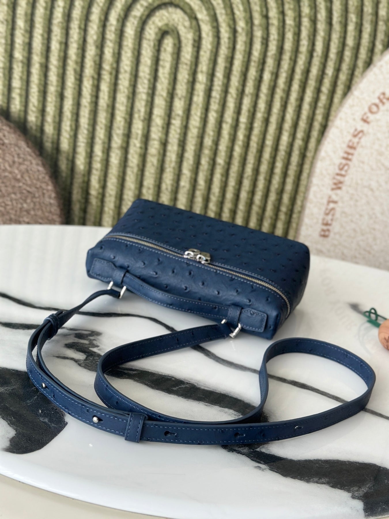 Loro Piana L19 Ostrich Pattern Handbag in Sapphire Blue