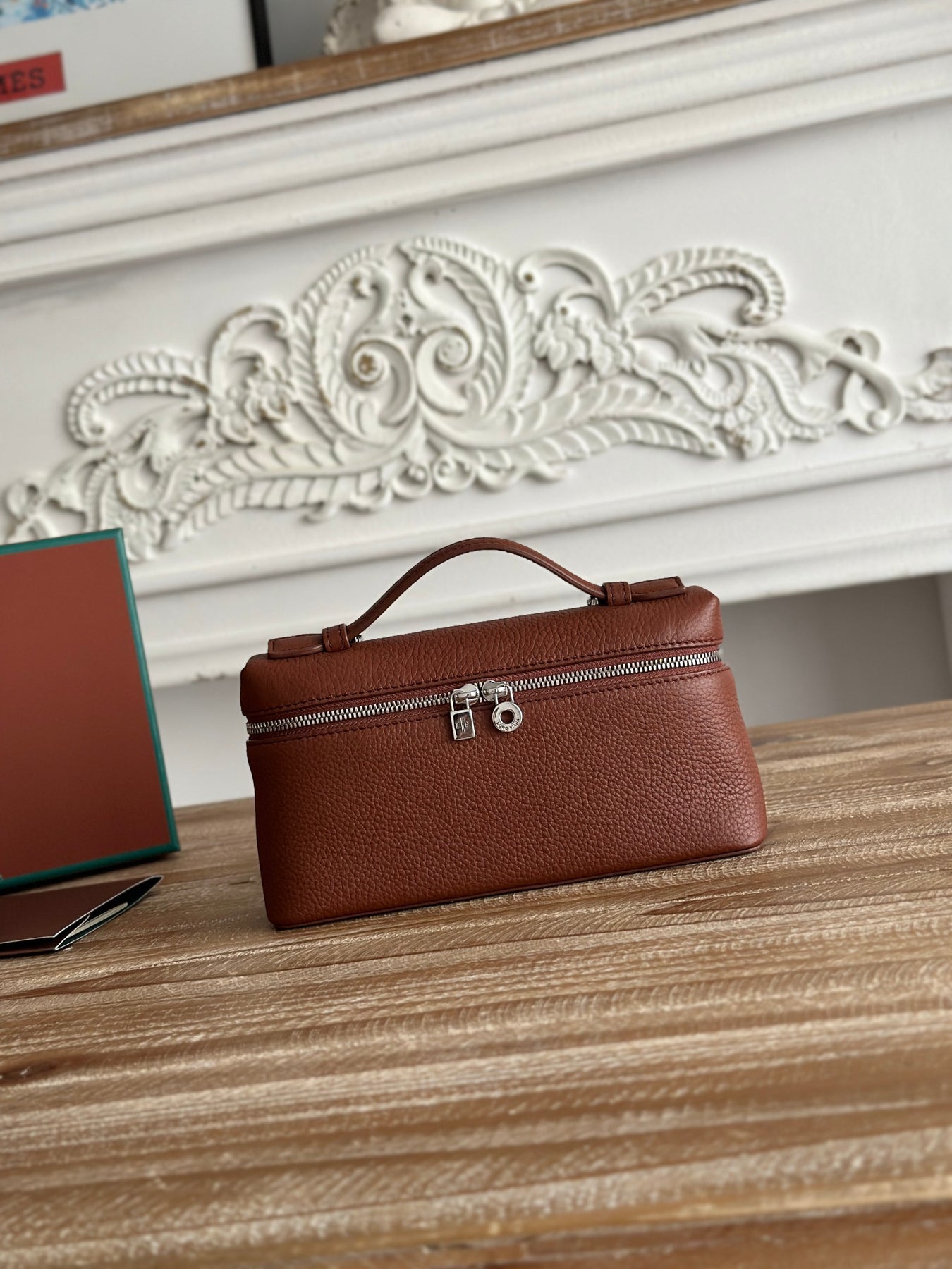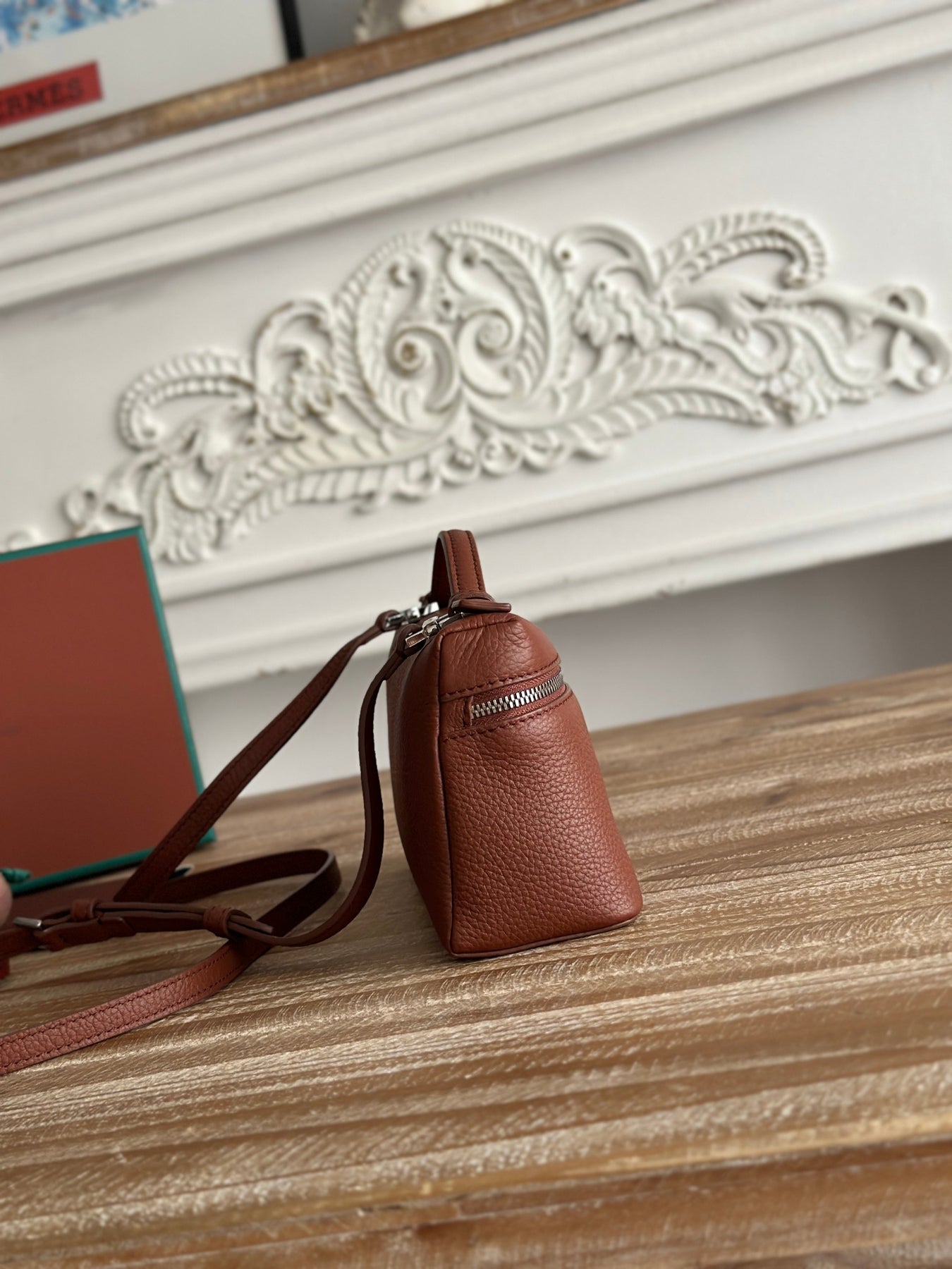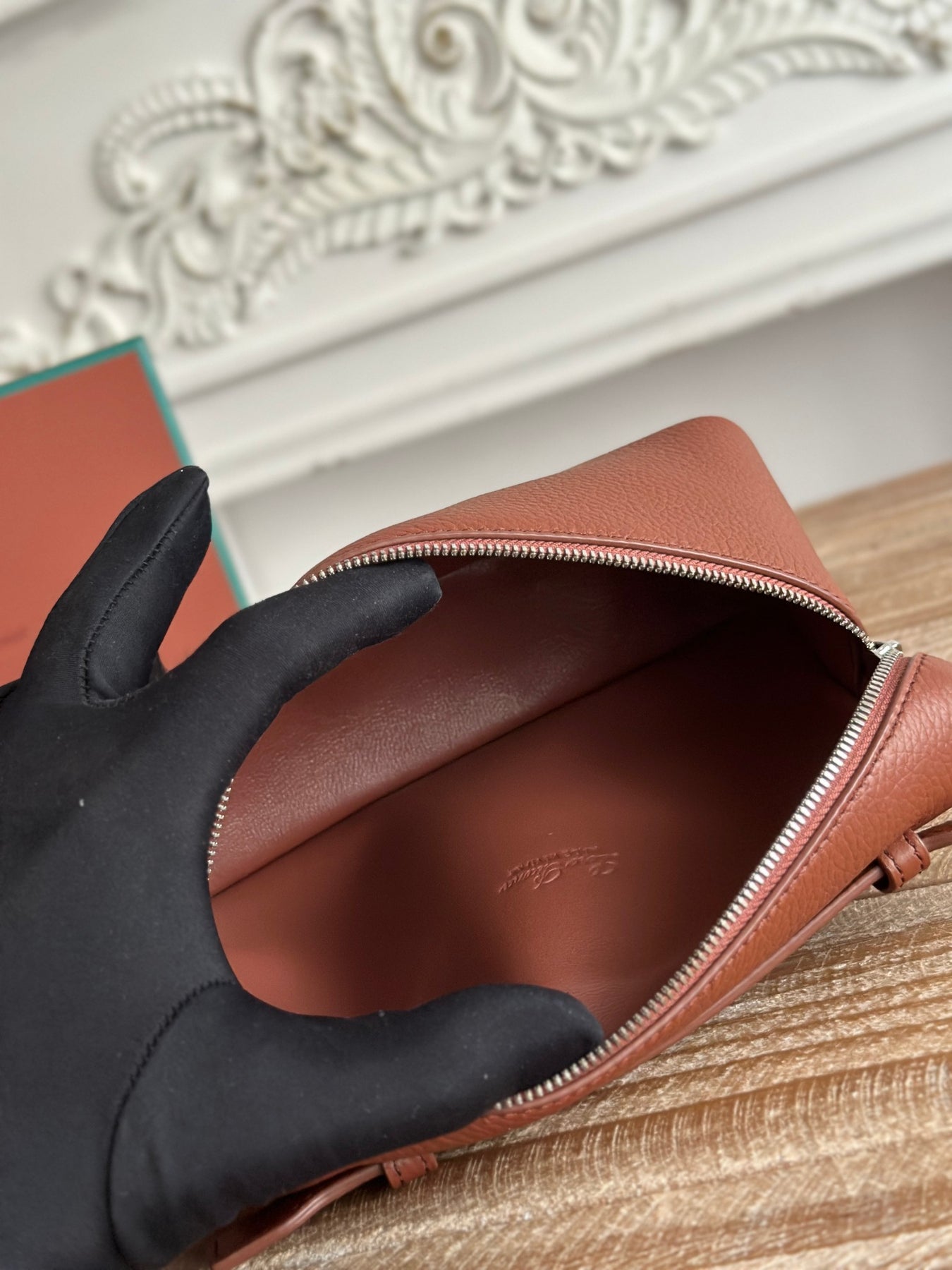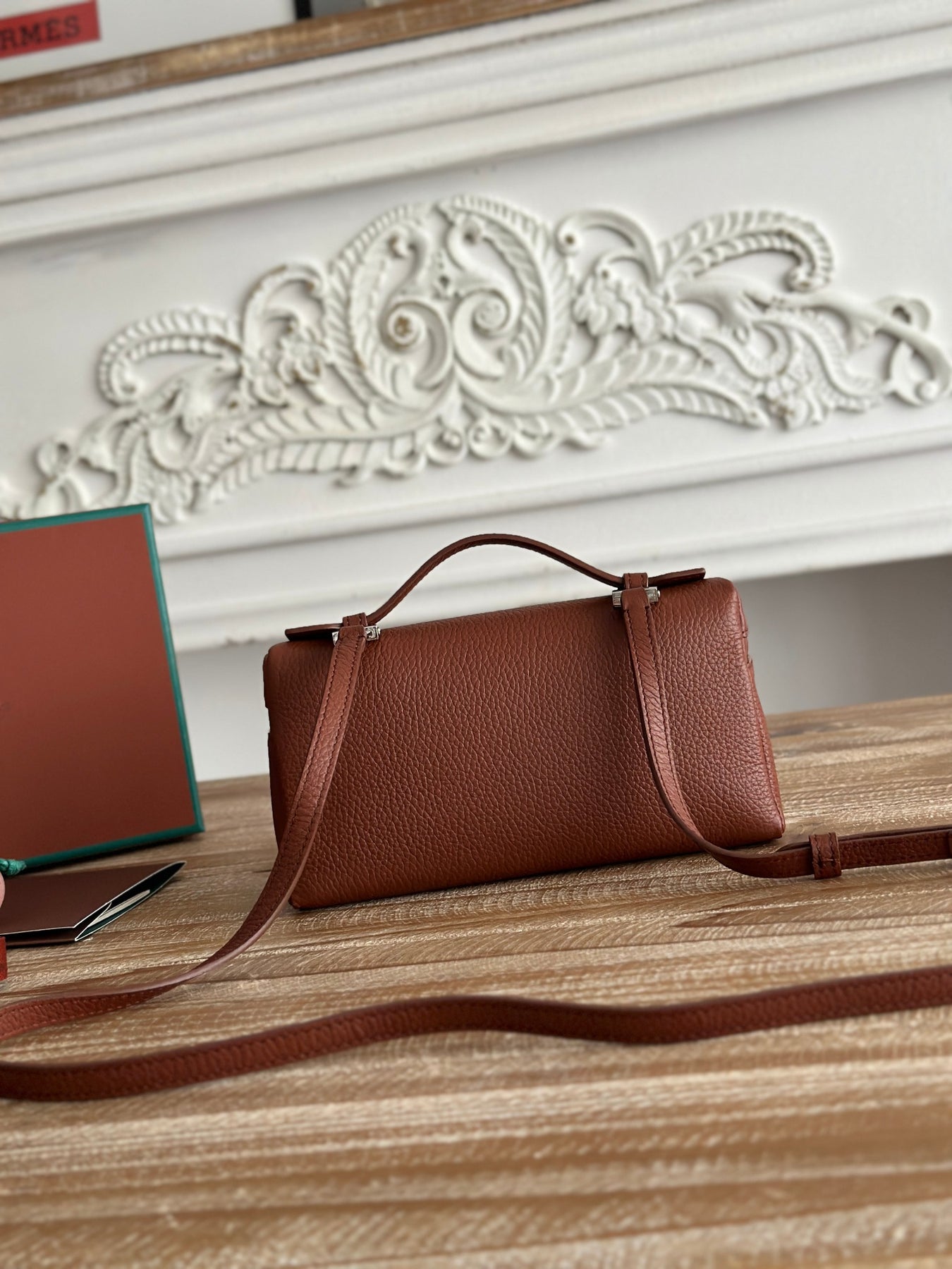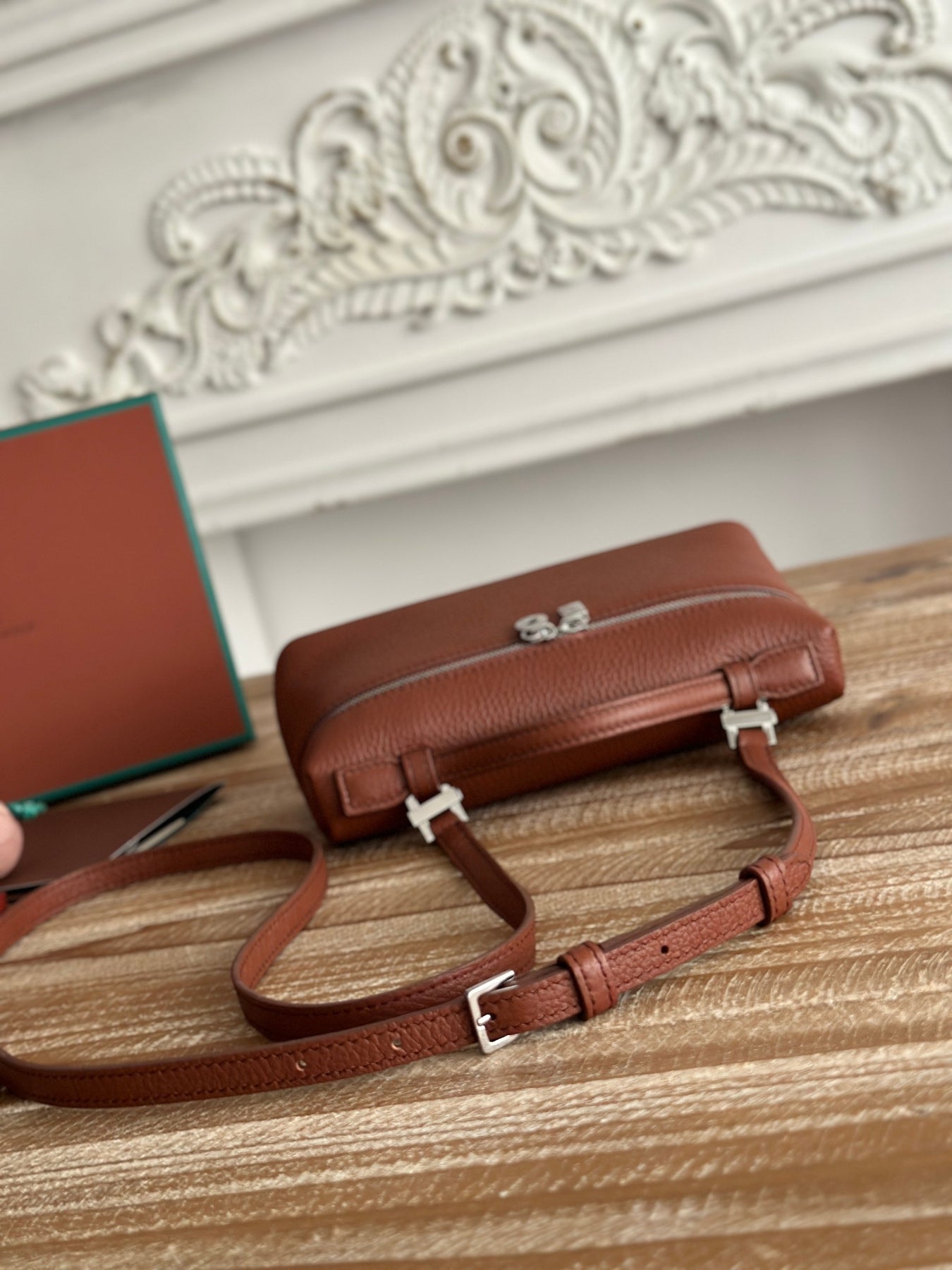 Elevate your accessory collection with the Loro Piana L19 Series Handbag. This elegantly designed handbag doubles as a crossbody bag, making it versatile for any occasion. Crafted in a striking red brick red color with a chic silver buckle, it offers both style and functionality.