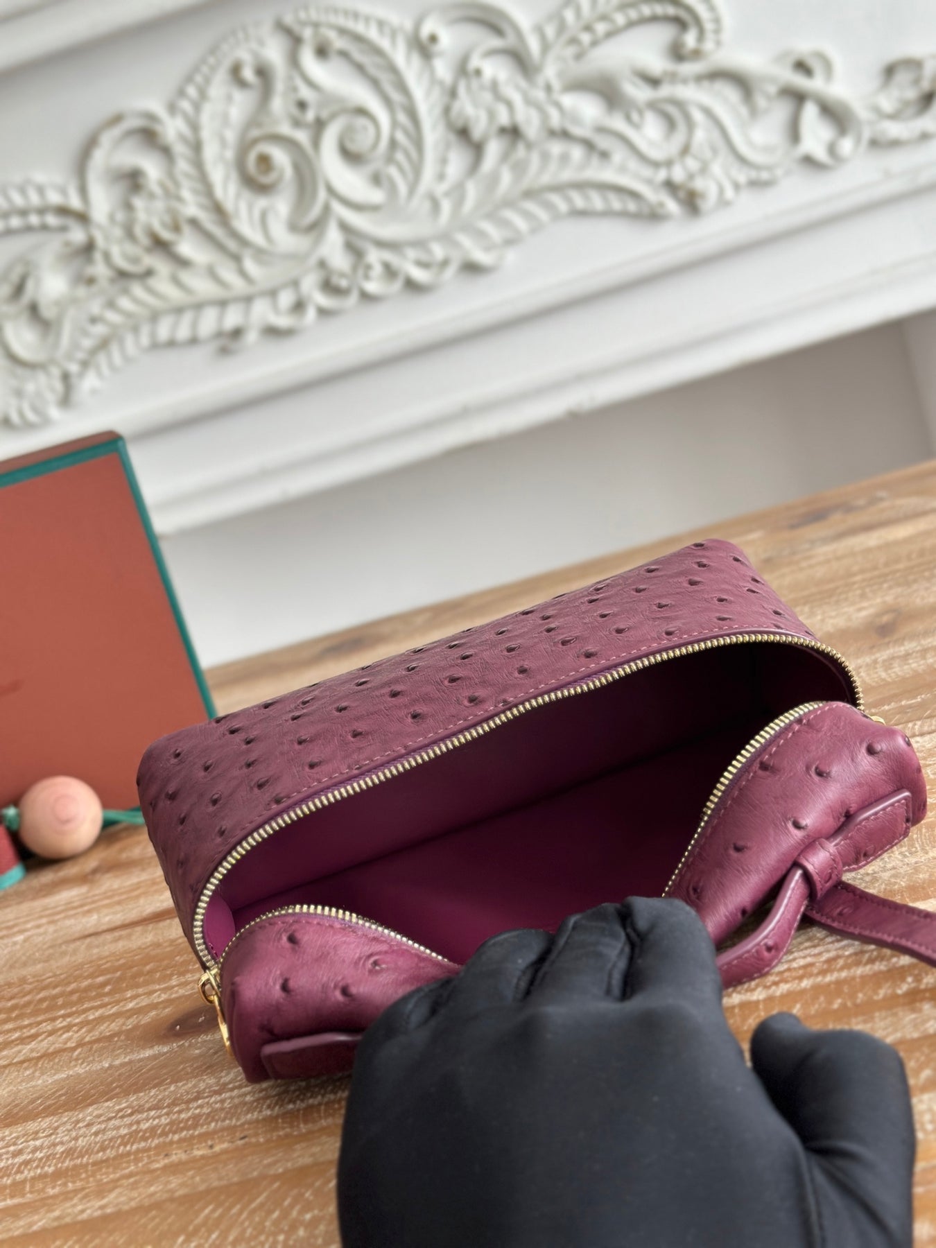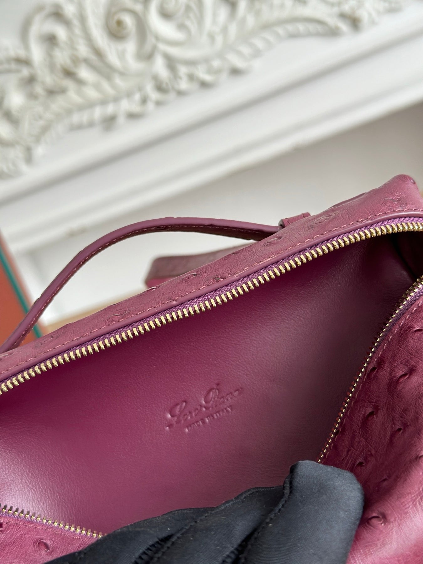 Loro Piana Ostrich Pattern Purple Handbag - Extra Pocket L19 Series