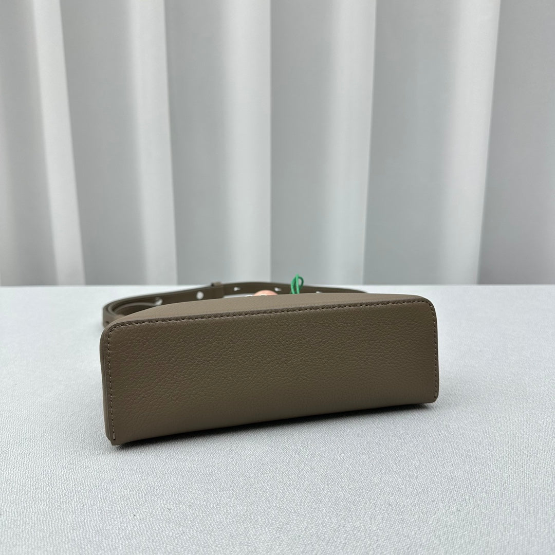 Introducing the upgraded Lororo Pia L19 Pocket Handbag in a stylish Elephant Gray. This small yet sophisticated accessory is designed for those who appreciate elegance without the fuss. Crafted from high-quality grained cowhide leather, the handbag is both soft and scratch-resistant, ensuring durability while maintaining a luxurious feel.