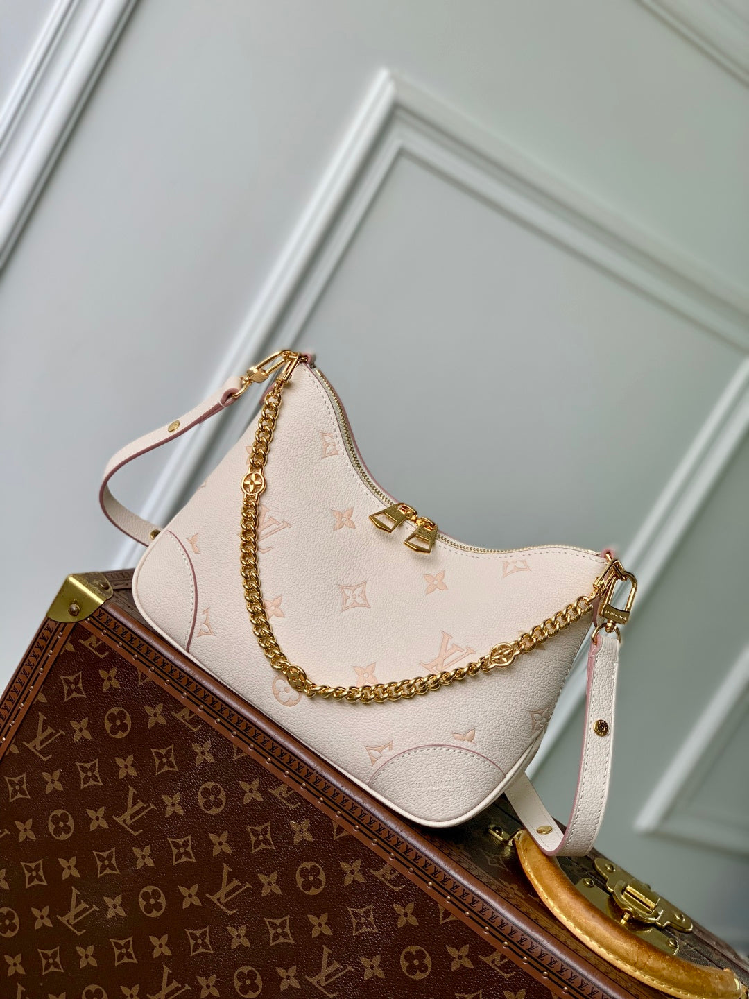 Discover the elegance of the Louis Vuitton Boulogne handbag, crafted from genuine Grade A fabric imported from France. This stylish accessory reimagines the classic Monogram Empreinte leather with a sophisticated tonal aesthetic and a luxurious shine, featuring a detachable chain and exquisite LV floral detailing.