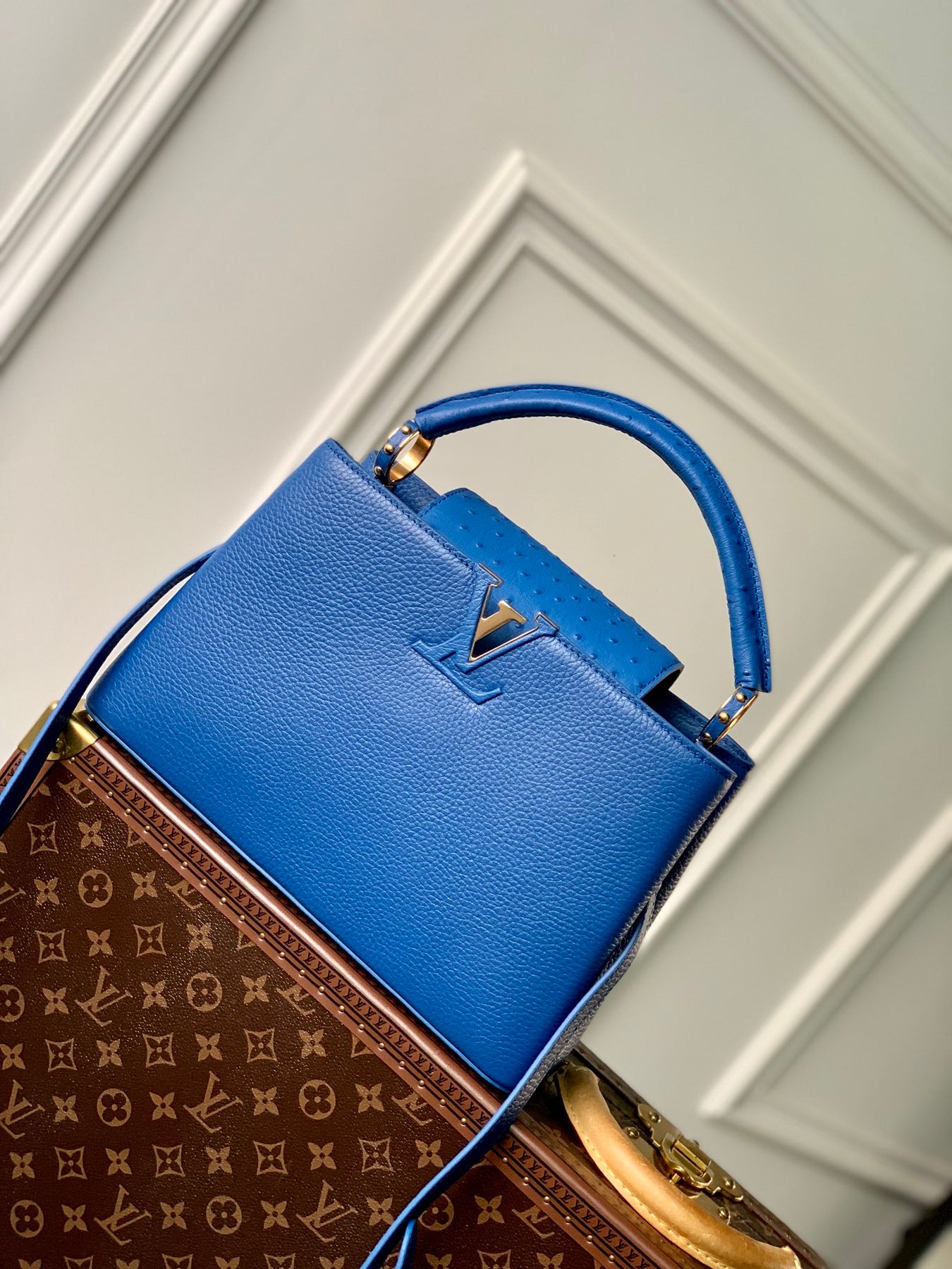 Louis Vuitton Capucines Medium Leather Bag - Blue Taurillon & Ostrich