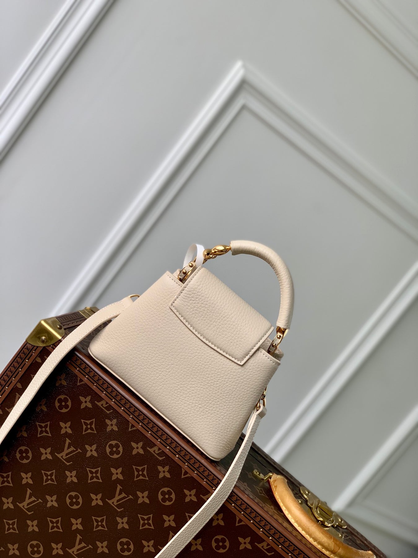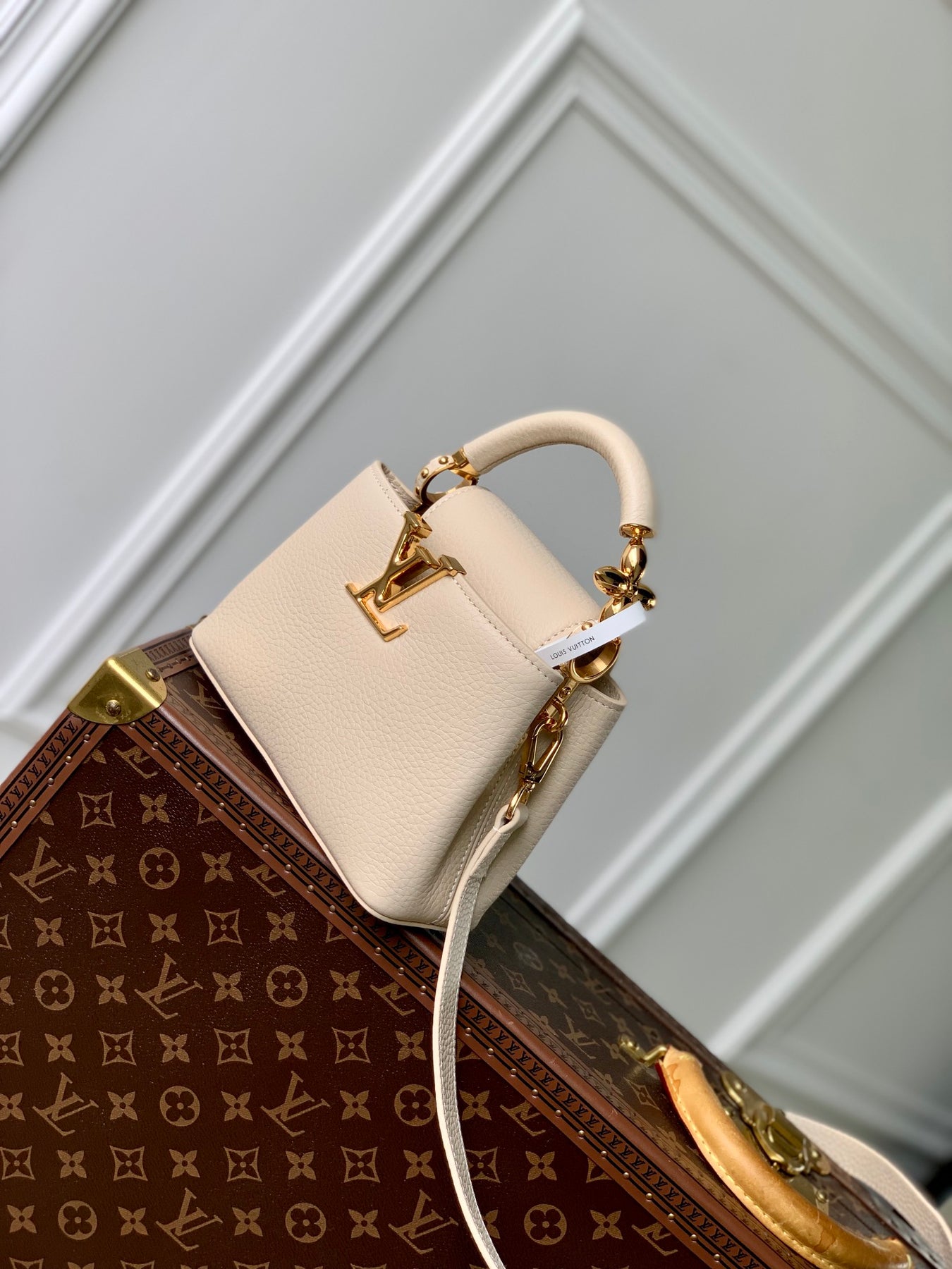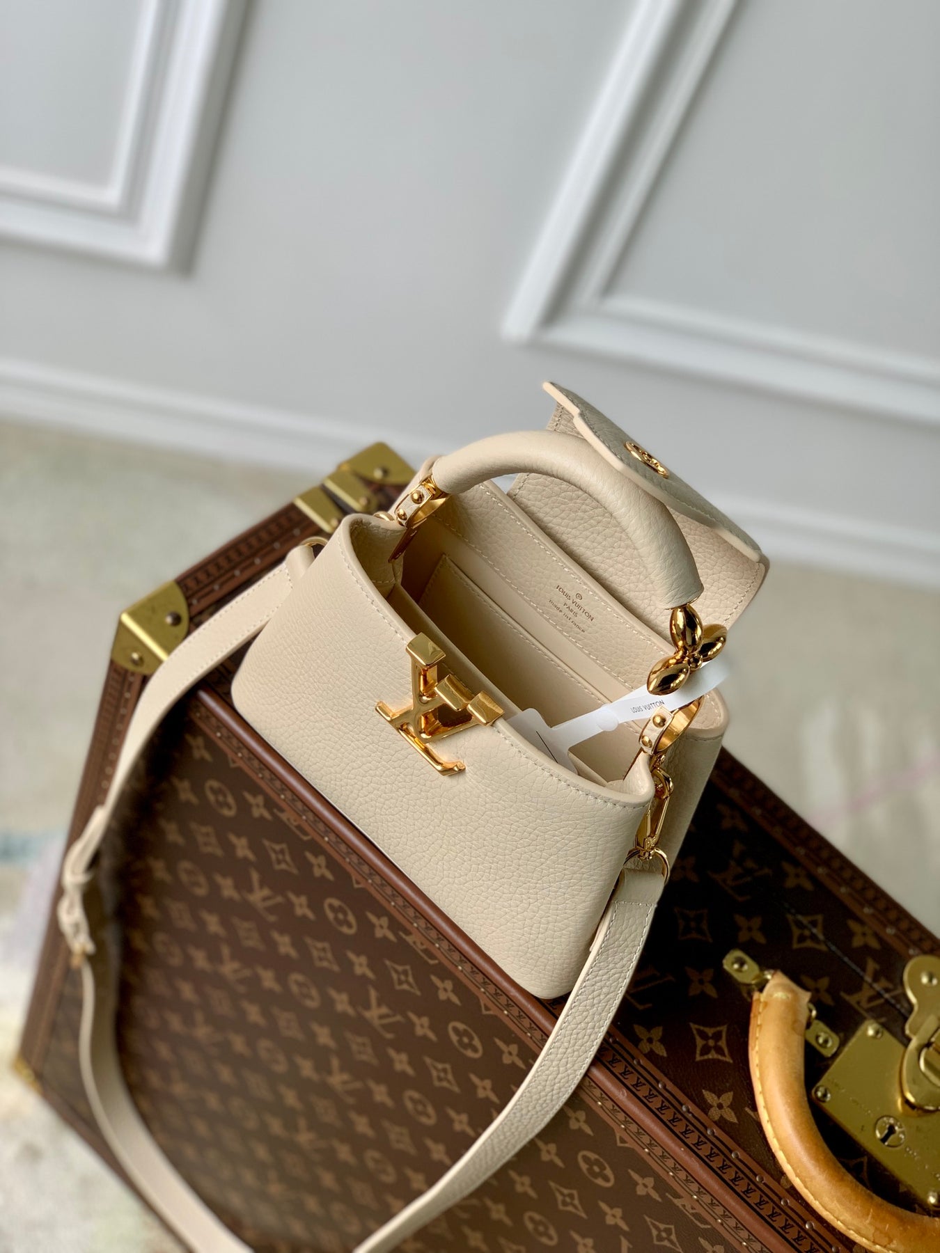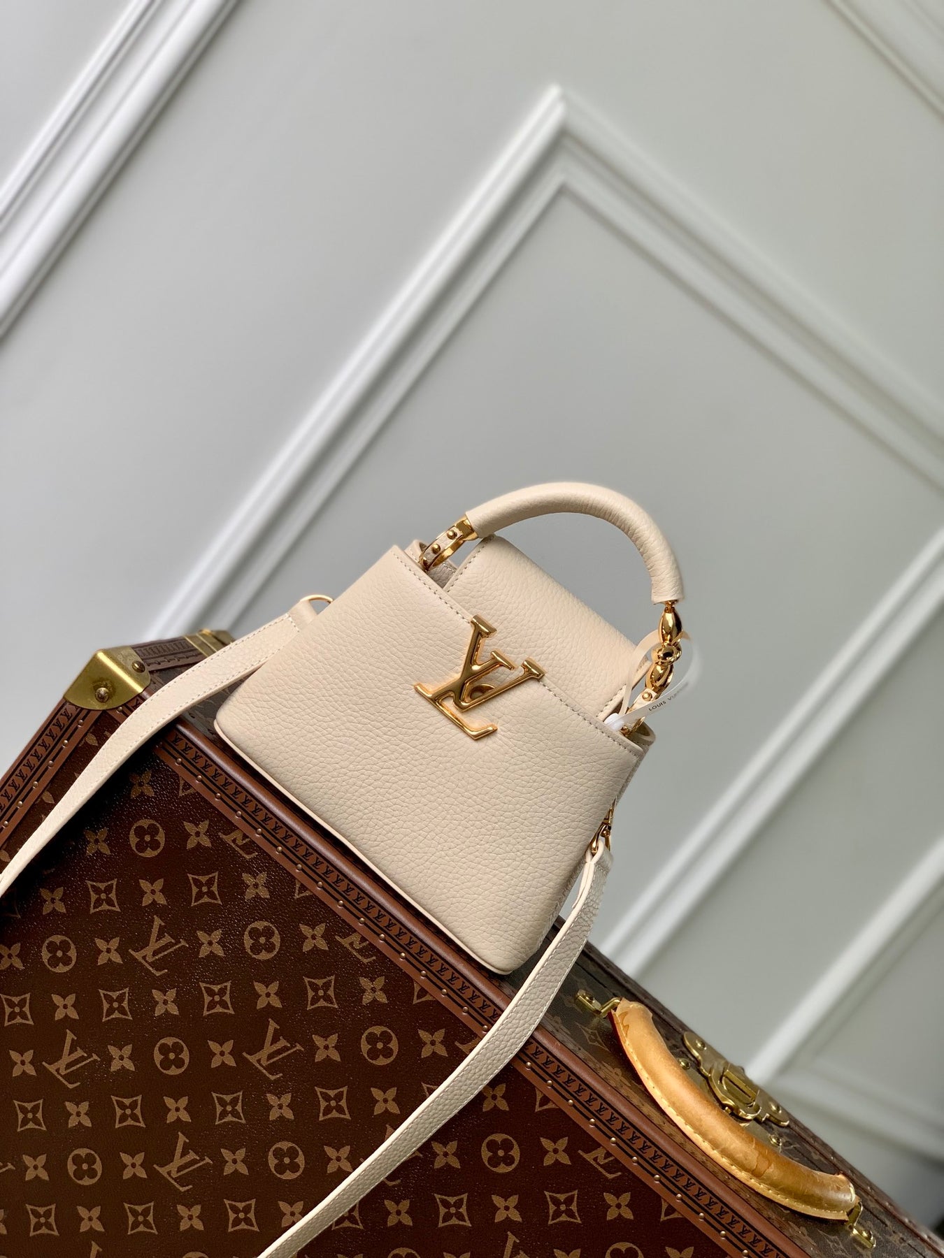 Louis Vuitton Capucines Mini Handbag - Beige Leather with Monogram Accents