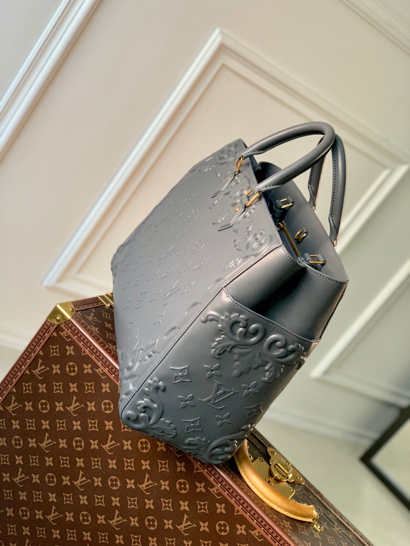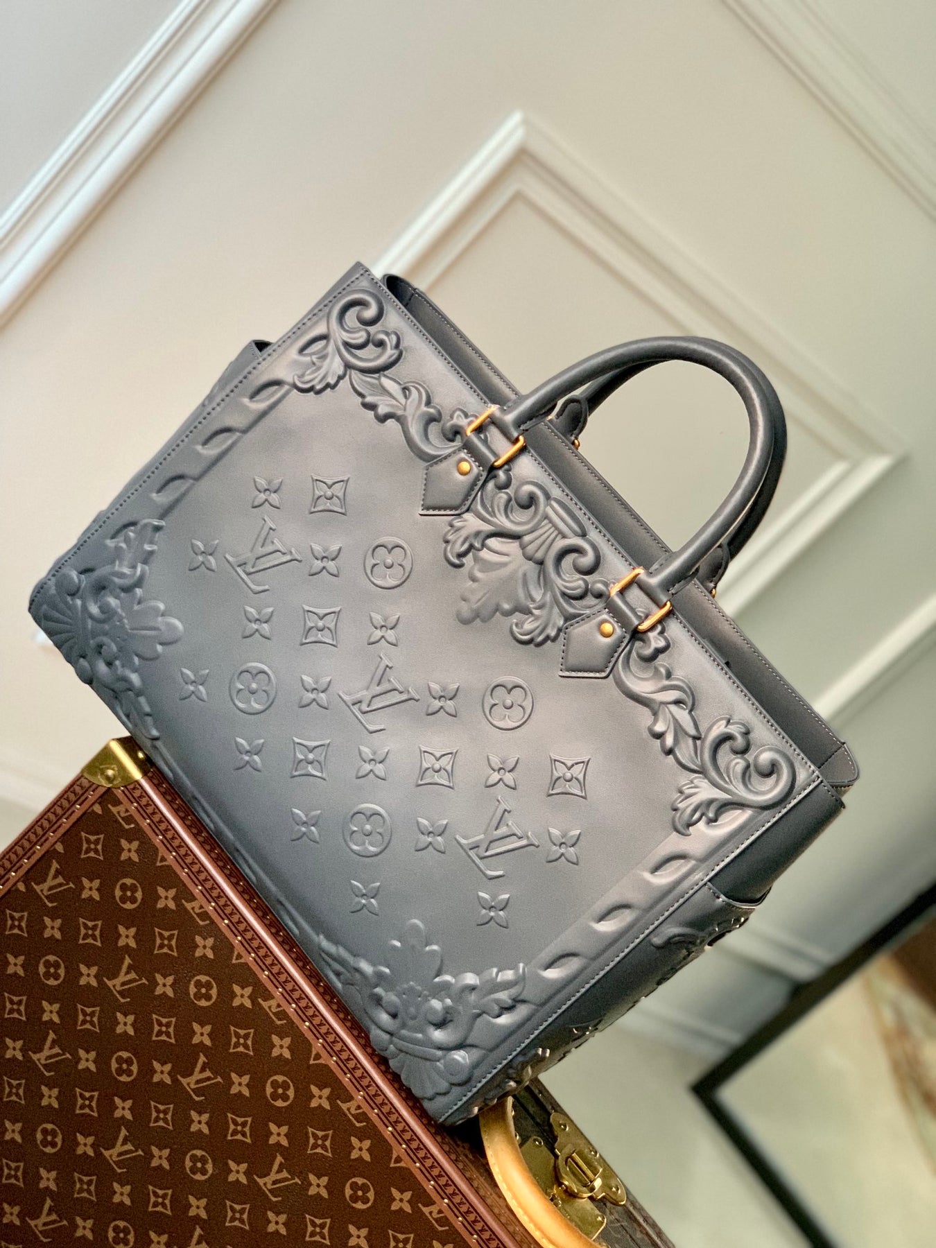 Discover the elegance of the Louis Vuitton Embossed Leather Sac Plat Handbag from the exclusive LV Ornaments series. Crafted from premium full-grain leather, this sophisticated briefcase features exquisite cowhide embossing that pays homage to the intricate reliefs of 18th-century French country estates.