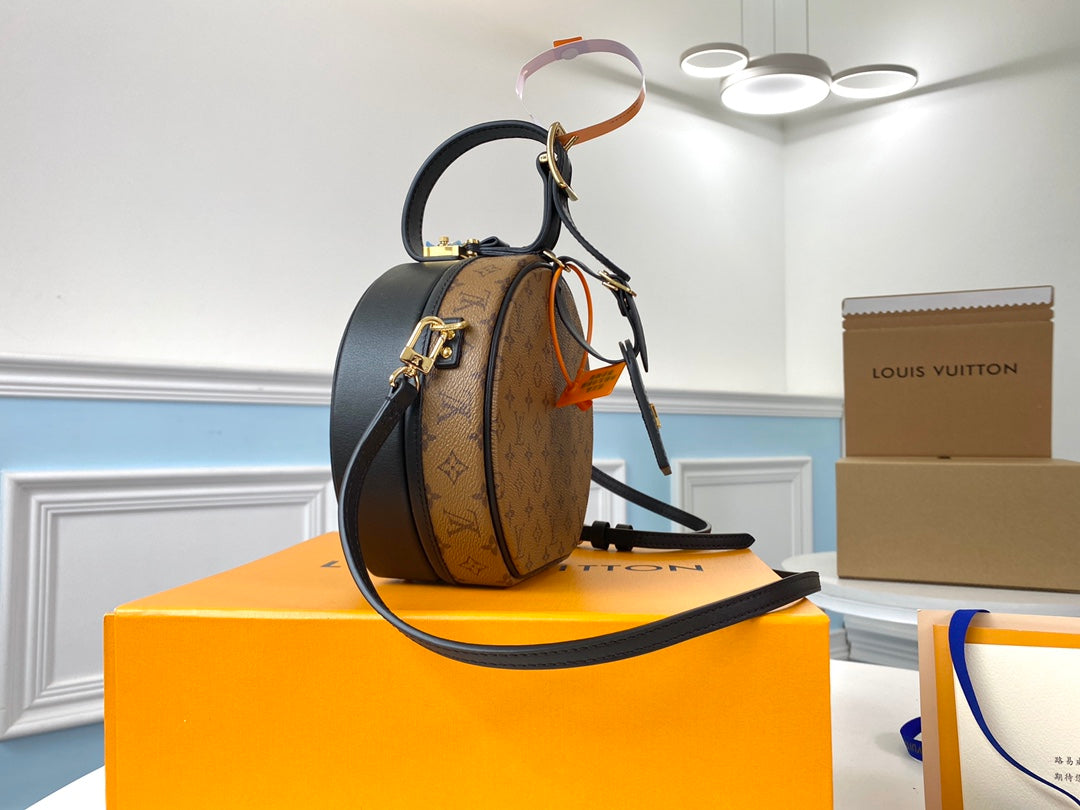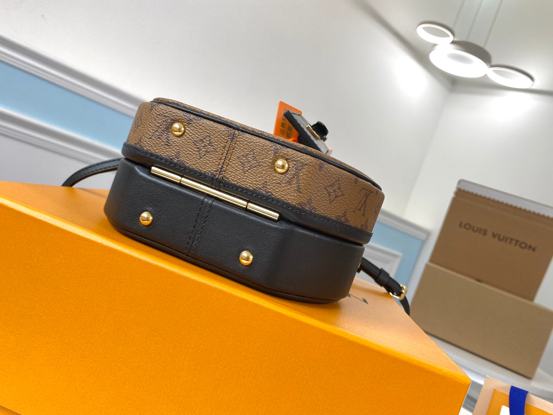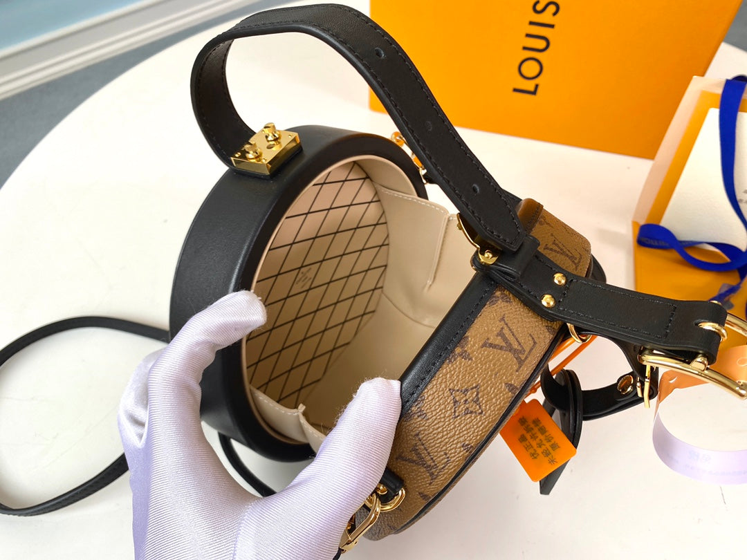 Introducing the Louis Vuitton M43514 Yellow Flower Hat Box Pouch – a refined blend of elegance and practicality. This compact carry-on pouch is designed to accommodate your essentials, including an iPhone 7. Featuring a dual design, it showcases the iconic classic Monogram canvas paired with luxurious cowhide trimming, along with a trendy Reverse Monogram canvas accented with sleek black calfskin.