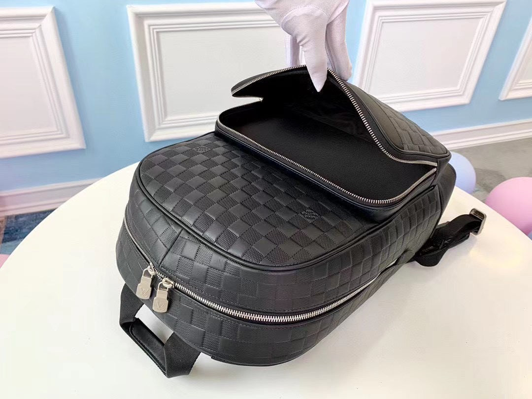 Discover the Louis Vuitton N40094 Campus Backpack, crafted from sophisticated Damier Infini leather with a striking silver shine. This backpack features an embossed version of the iconic Damier checkerboard pattern, elevating its luxurious appeal. The standout silver zipper creates a focal point while ensuring practicality with multiple inner and outer pockets, including double patch pockets and an exterior zip compartment. Designed for versatility, this backpack includes adjustable leather shoulder straps and a top handle for comfortable carrying.