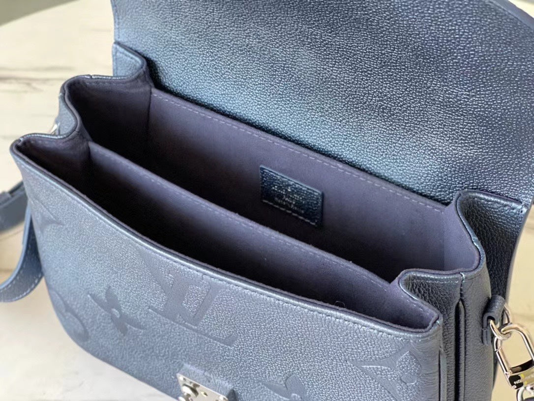 Elevate your style with the Louis Vuitton Pochette Metis in soft Monogram Empreinte leather. This chic and compact bag features a sophisticated design that effortlessly combines elegance with functionality. Measuring 25.0 x 19.0 x 7.0 cm, it offers multiple pockets and compartments to keep your essentials organized. Perfect for any occasion, the Pochette Metis is a timeless accessory that enhances any outfit.