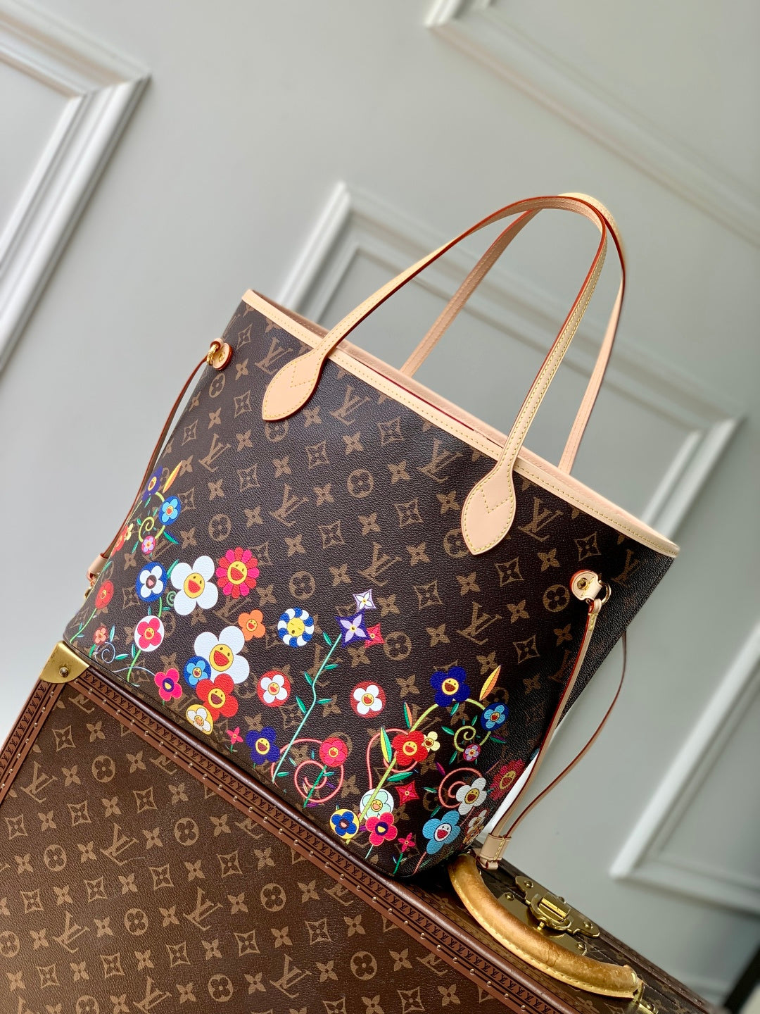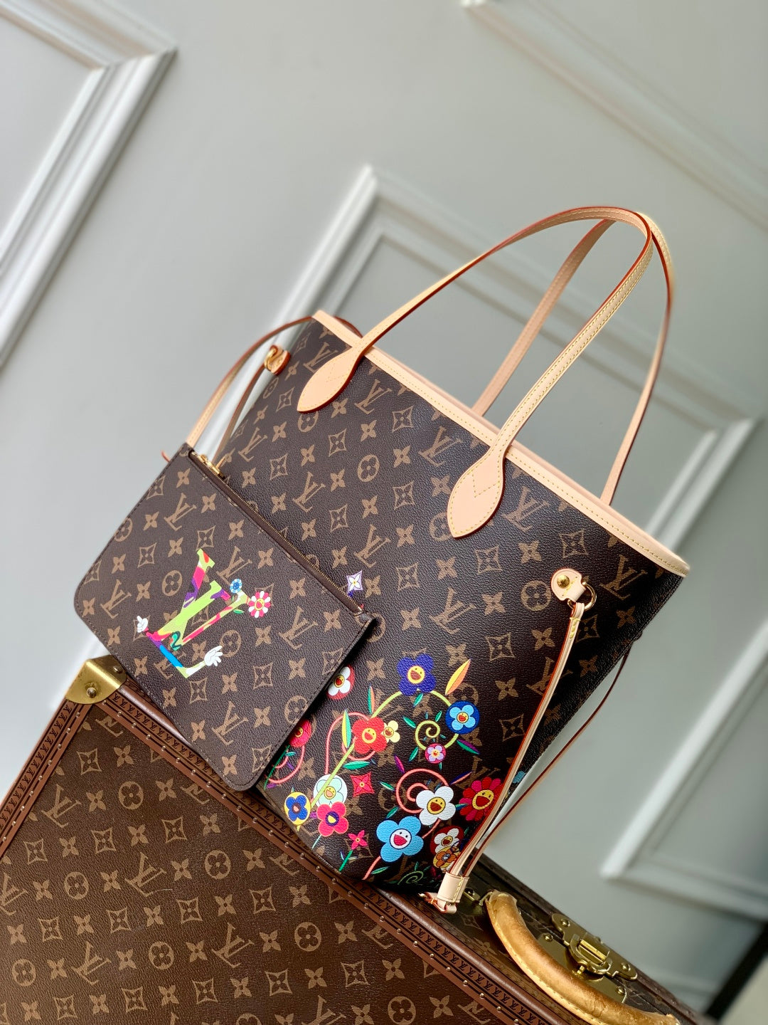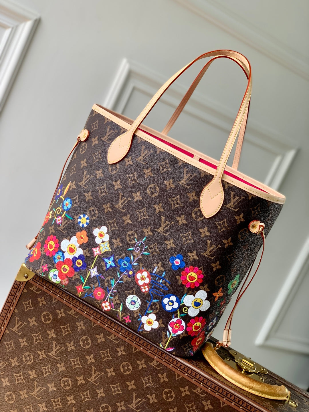 Crafted with premium materials and showcasing the signature LV monogram adorned with Takashi Murakami's vibrant artwork, this handbag is not only a symbol of style but also a statement piece for any fashion enthusiast. Perfect for everyday use or special occasions, the Neverfull is designed for versatility and elegance.