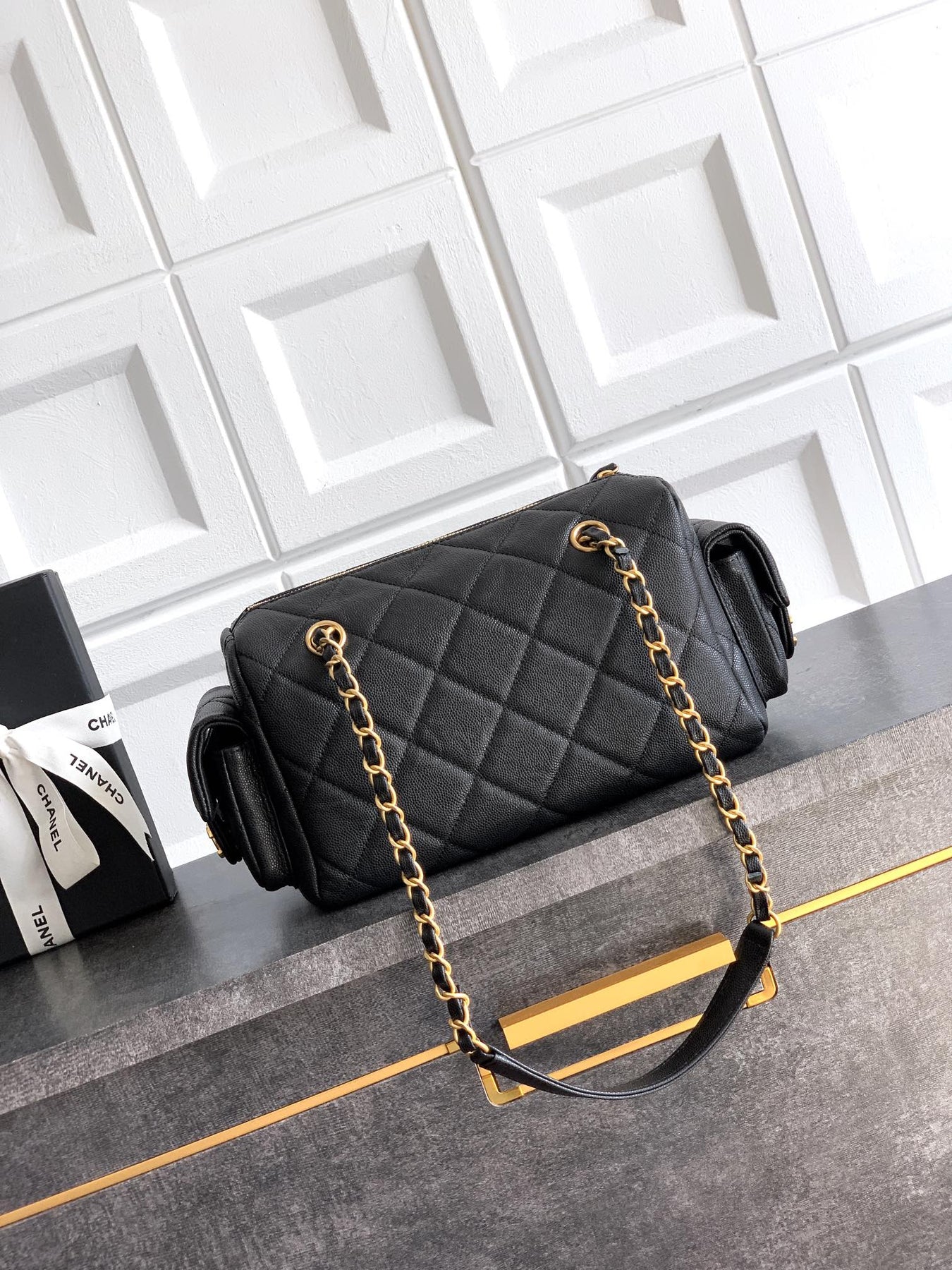 Luxurious Black Caviar Leather Bowling Bag by CHANEL