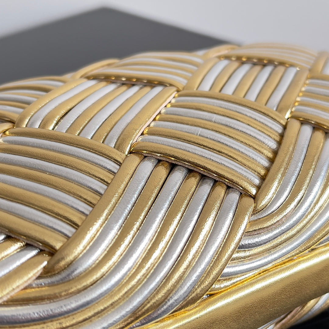 Elevate your evening style with the BV-Kont Dinner Bag, the ultimate accessory for the sophisticated woman. Featuring a stunning gold and silver gradient design, this exquisite evening bag adds a touch of sparkle to any outfit, whether you're donning a glamorous evening gown or stylish party attire.