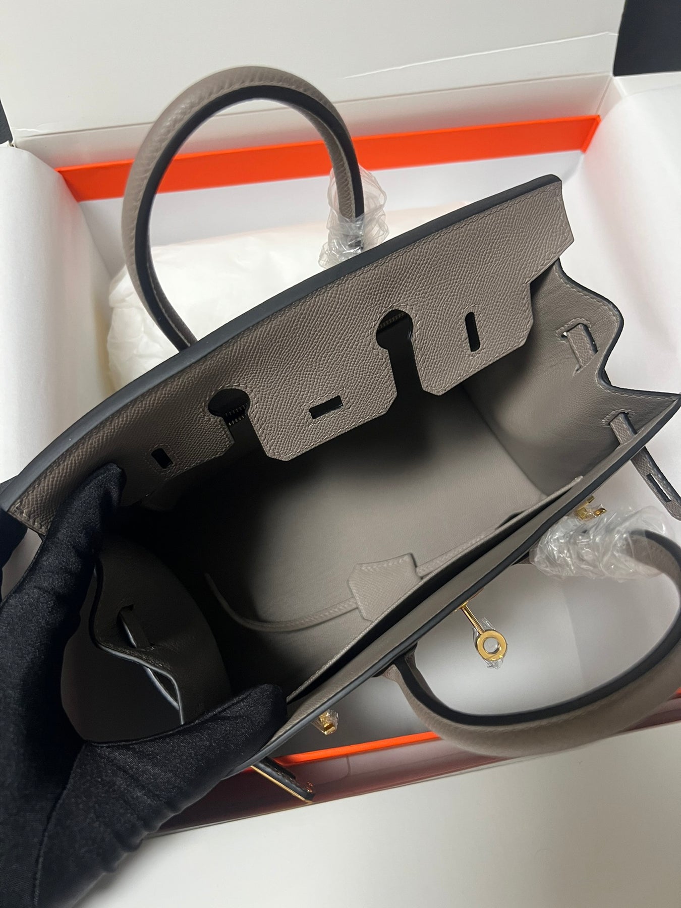 Luxury 30cm Semi-Handmade Birkin Sellier in Epsom Leather - Li Qing Gray with Gold and Silver Accents