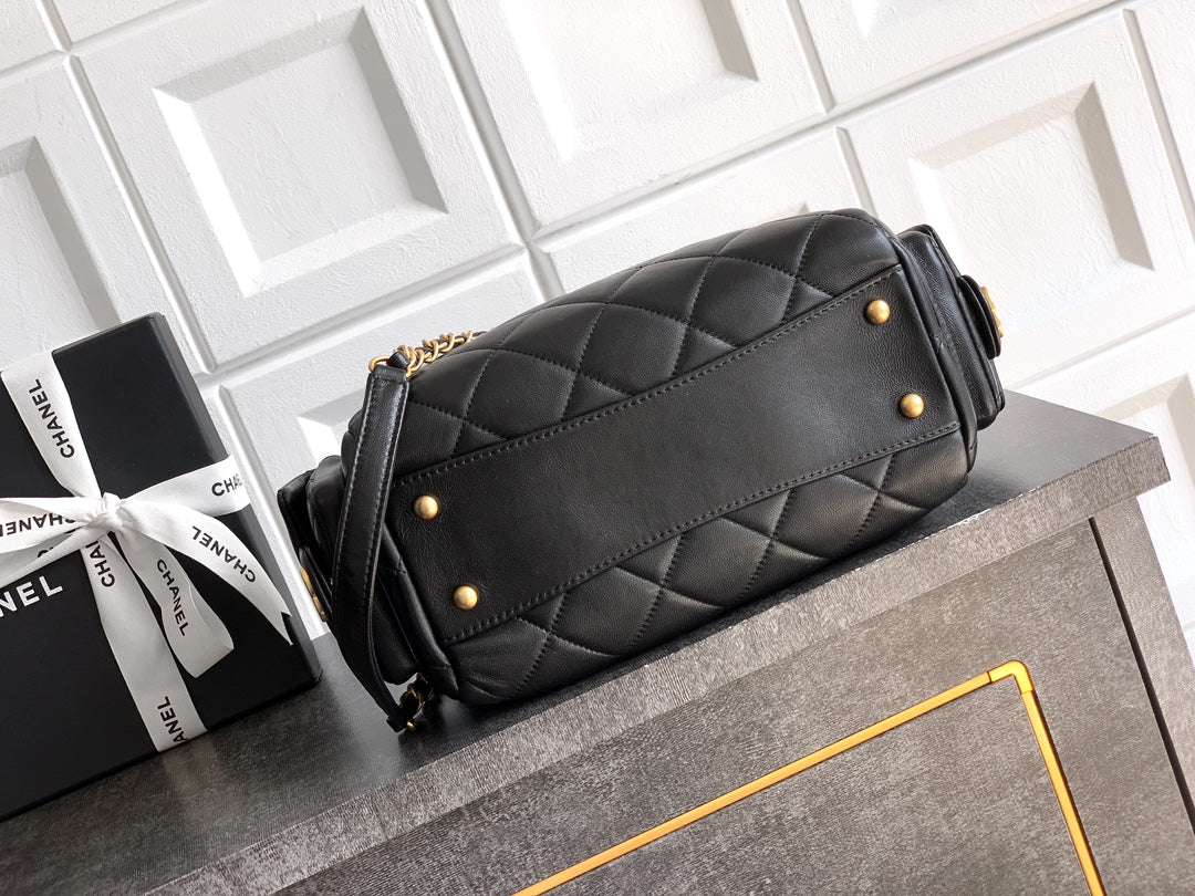 Elevate your accessory game with the Luxury Cotton Sheepskin Bowling Bag by CHANEL. This sophisticated bag features an elegant and practical design, allowing for versatile carrying options—whether handheld or over the shoulder. Crafted from the finest leather and adorned with exquisite craftsmanship, this bowling bag embodies luxury.
