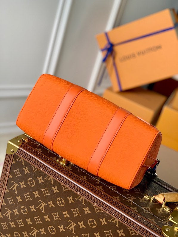 Luxury LV M59328 Orange Full Leather City Keepall Handbag