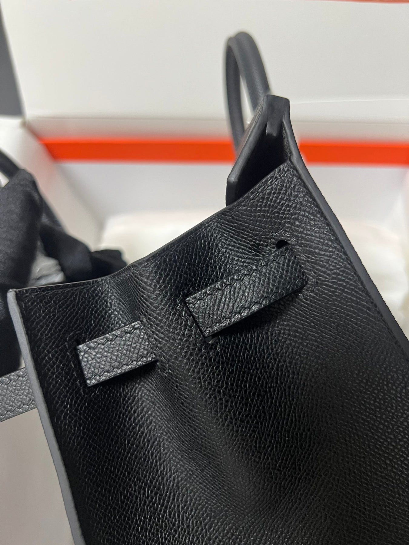 Luxury Semi-Handmade Birkin Sellier - Black Waxed Epsom Leather