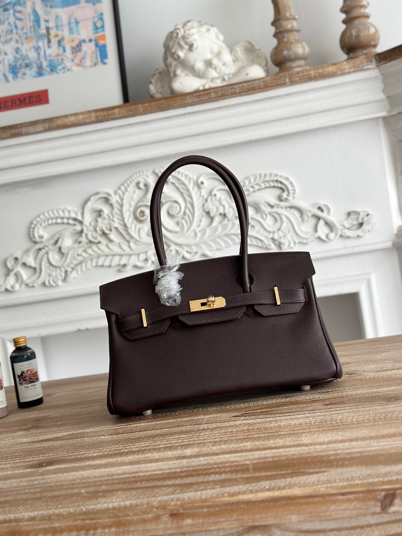 Discover our stunning 29cm Semi-Handmade Platinum Shoulder Birkin Bag, a perfect blend of elegance and modern style. Crafted from premium EV leather, this bag embodies sophistication for the contemporary urban woman. It features a striking wine red hue paired with a luxurious gold buckle, providing a high-end appeal that's sure to turn heads. Elevate your accessory collection with this must-have handbag designed for both everyday wear and special occasions.