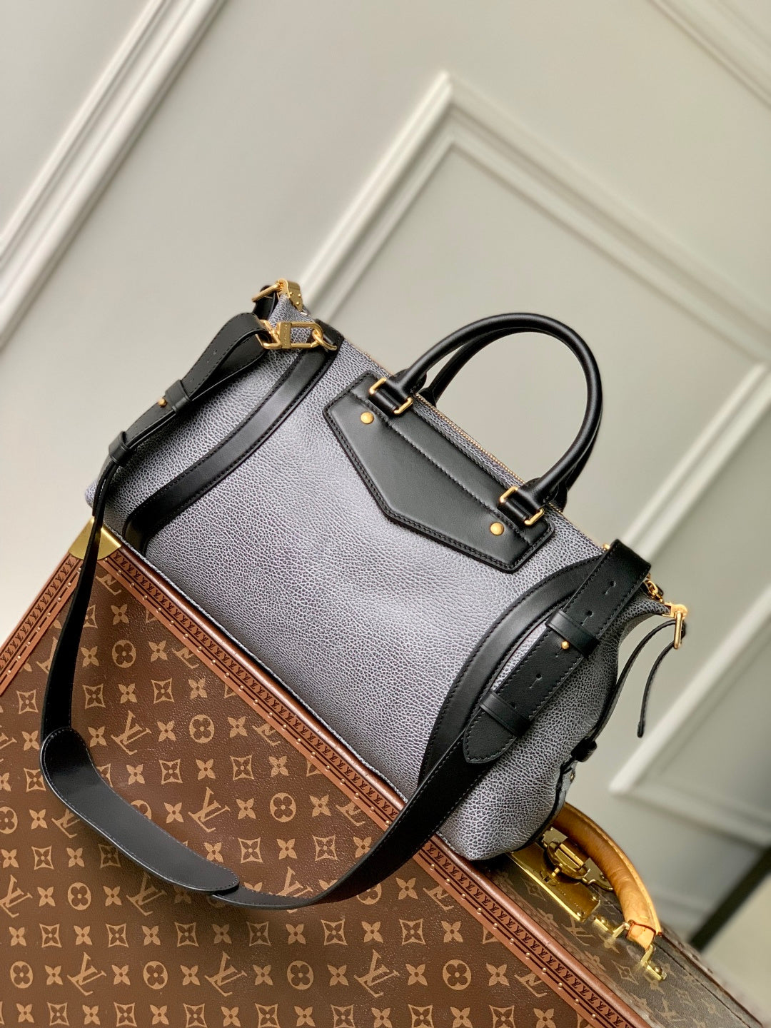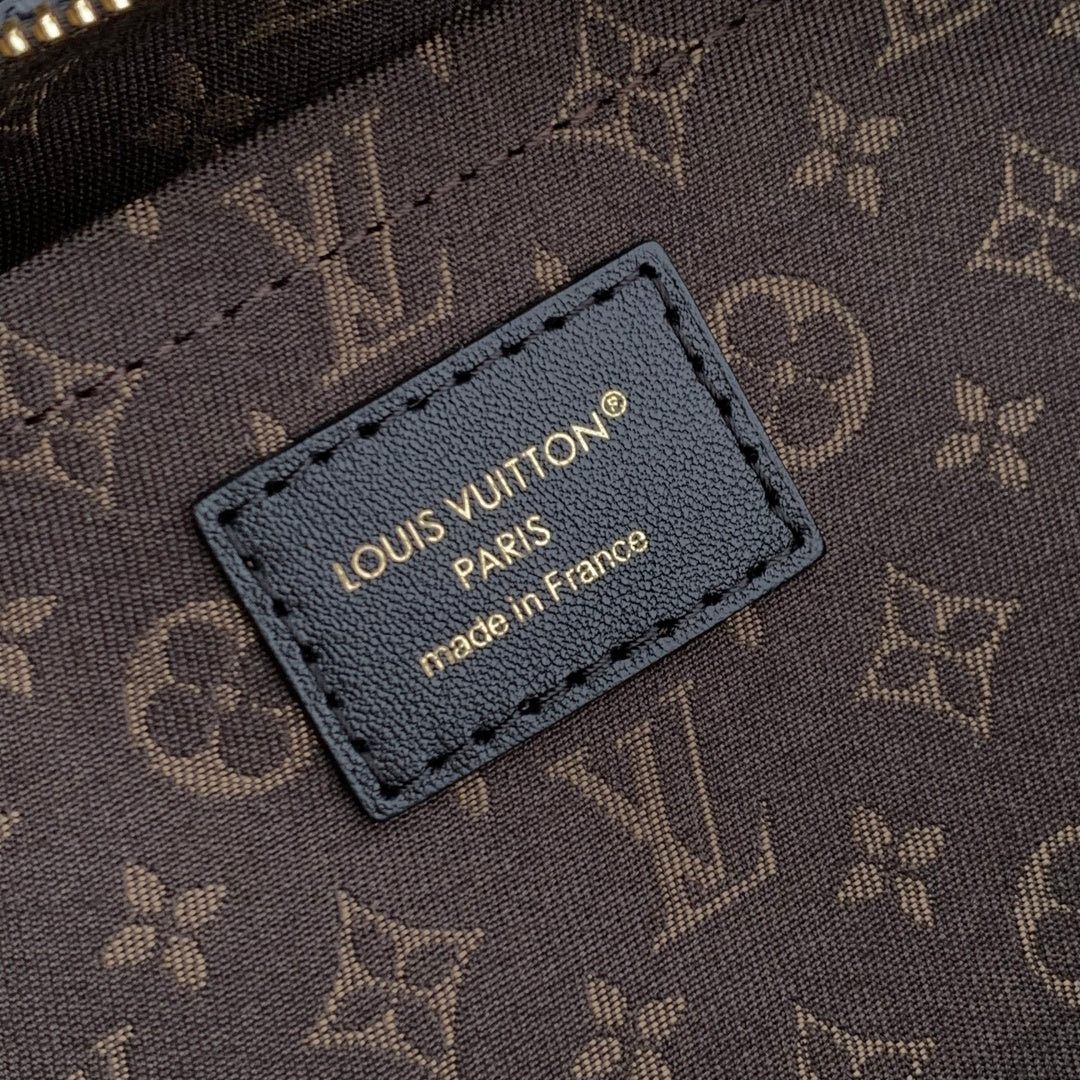 The design is accentuated by striking V-shaped contrasting leather panels adorned with the iconic LV Circle logo, while the adjustable side straps offer versatility in style. Crafted for comfort, the soft leather shoulder strap allows for effortless shoulder or cross-body wear.